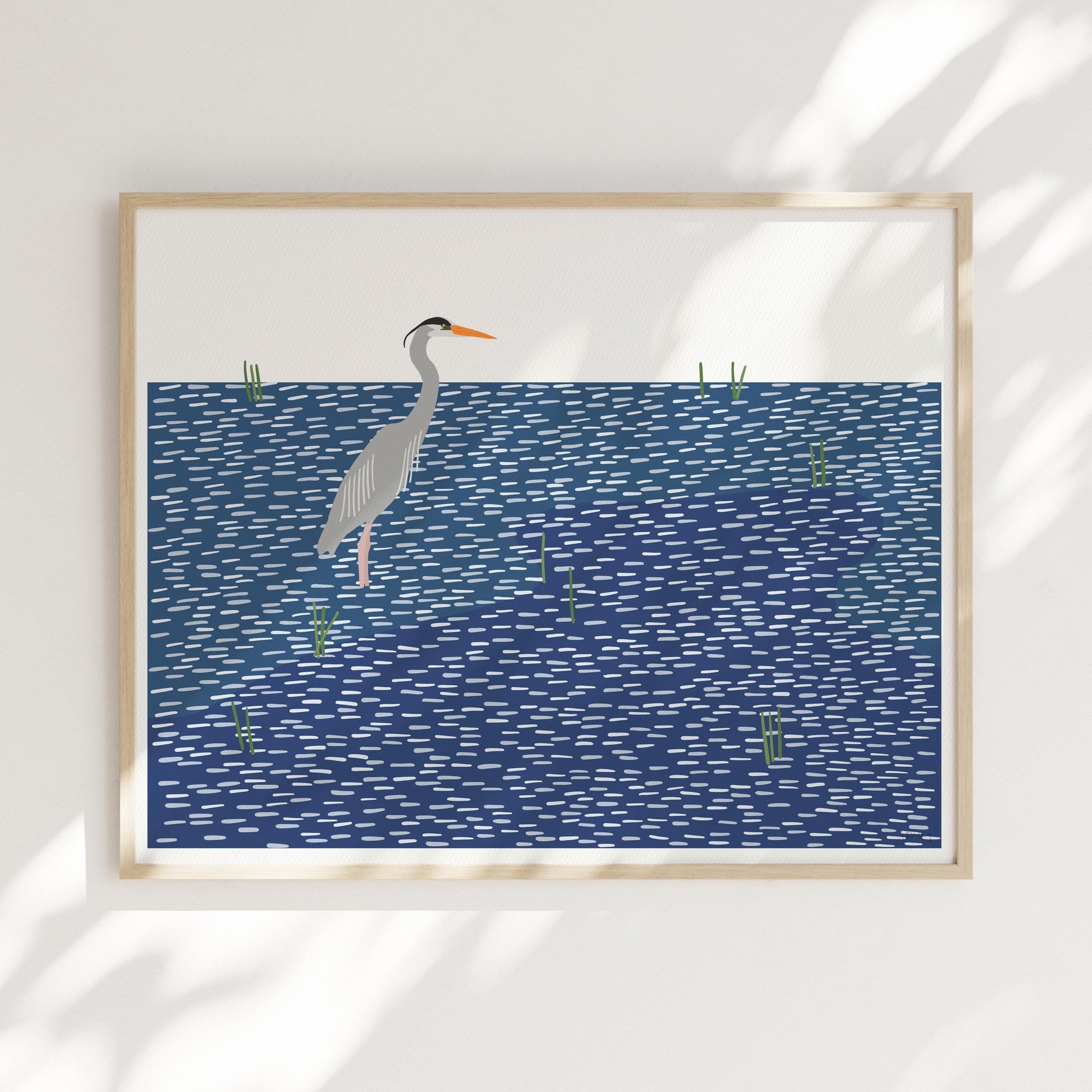 Heron Art Print – Signed Minimalist Coastal Wall Art - 251020
