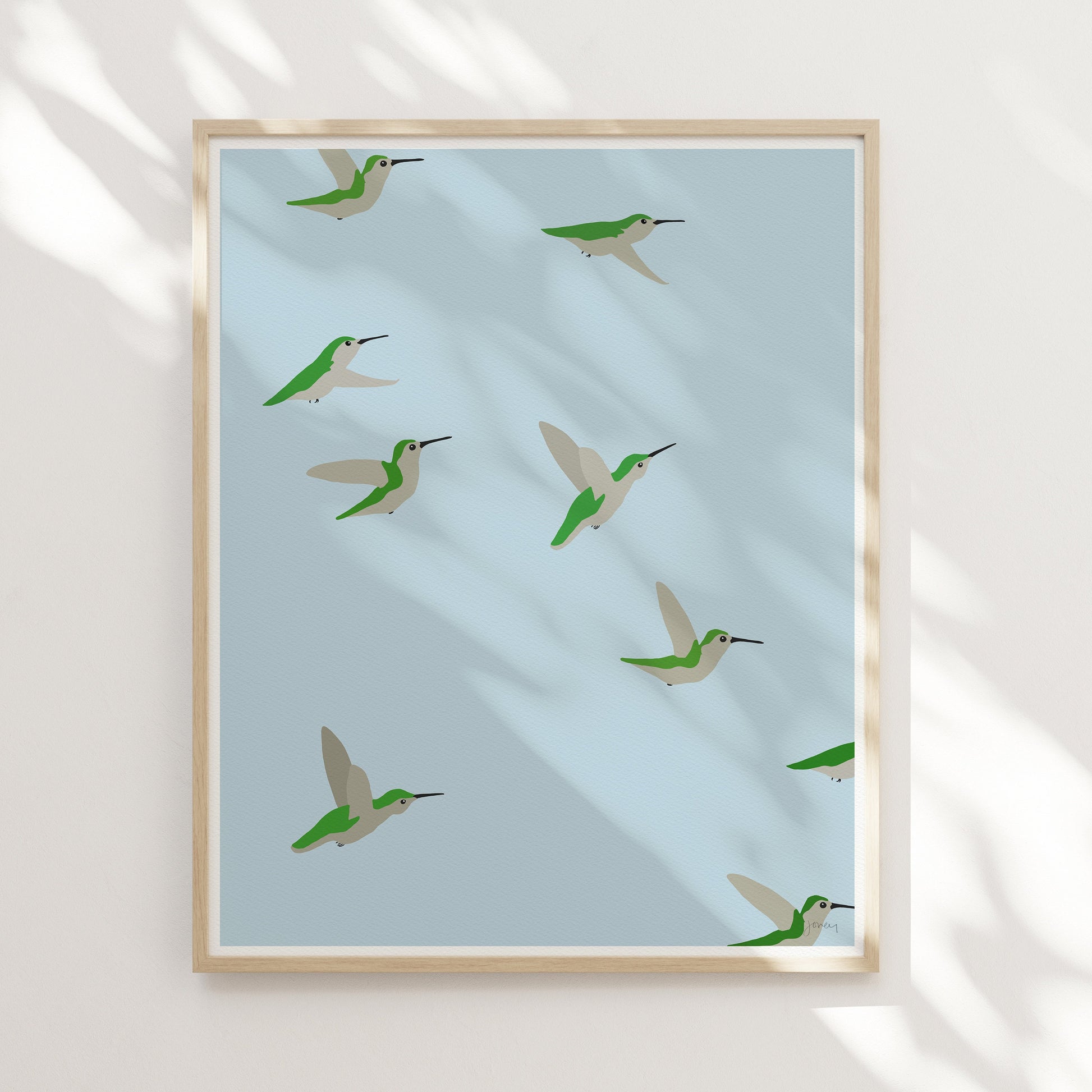 Invite these hummingbirds into your home with our "Charm of Hummingbirds" art print, a timeless addition to any wall decor collection.