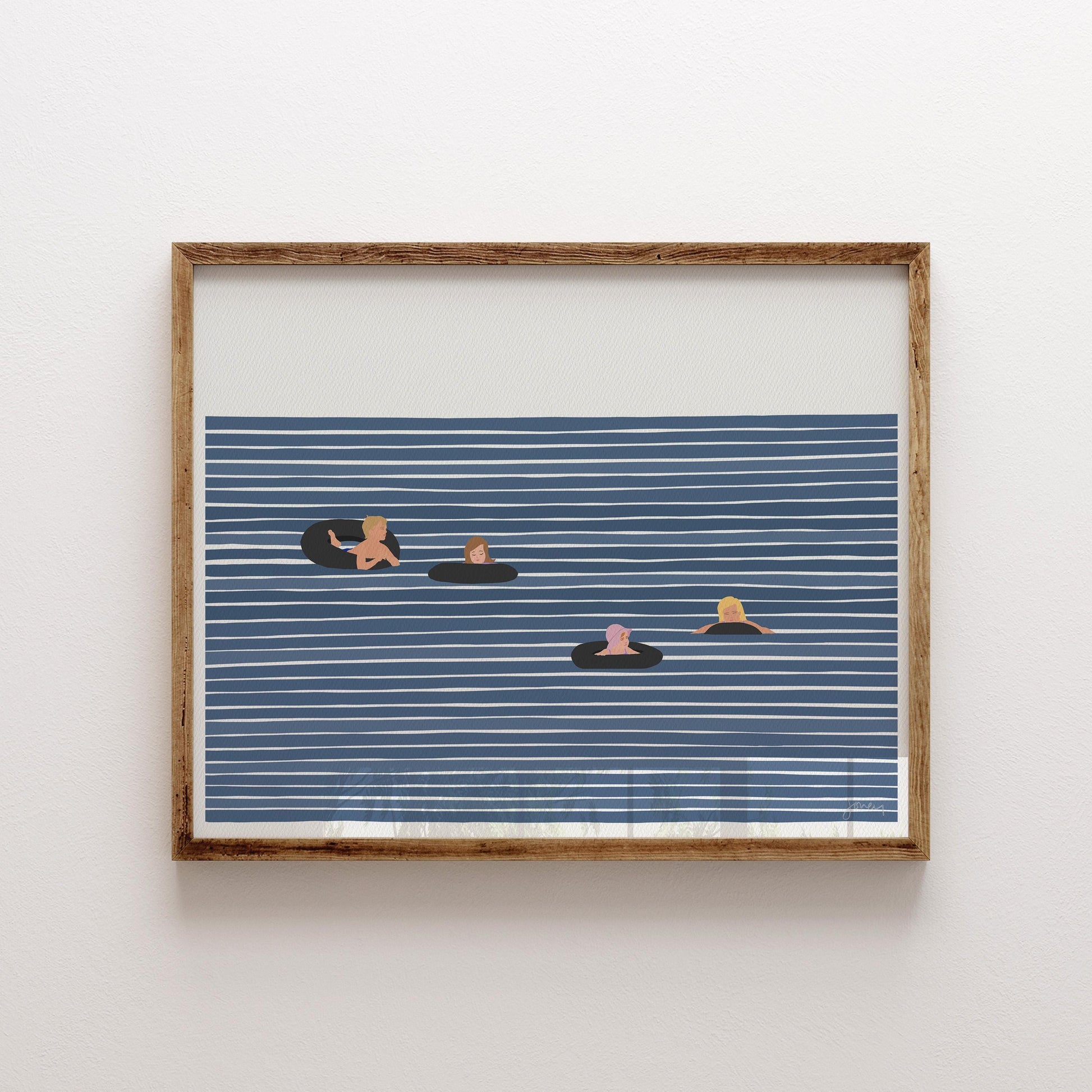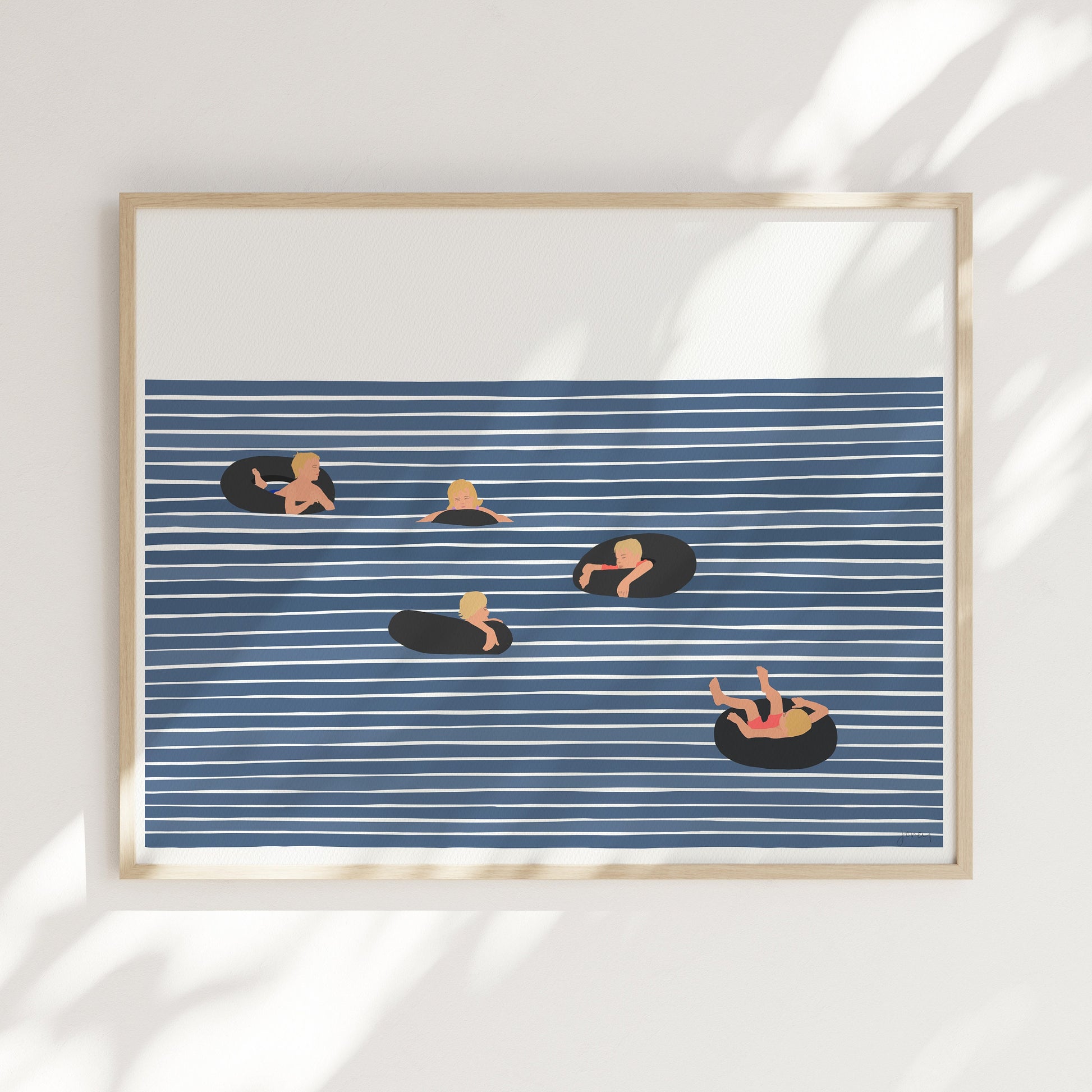 Bring the spirit of riverside fun into your home with my kids playing in 'Inner Tubes on a River' art print, a timeless celebration of youthful adventure.
