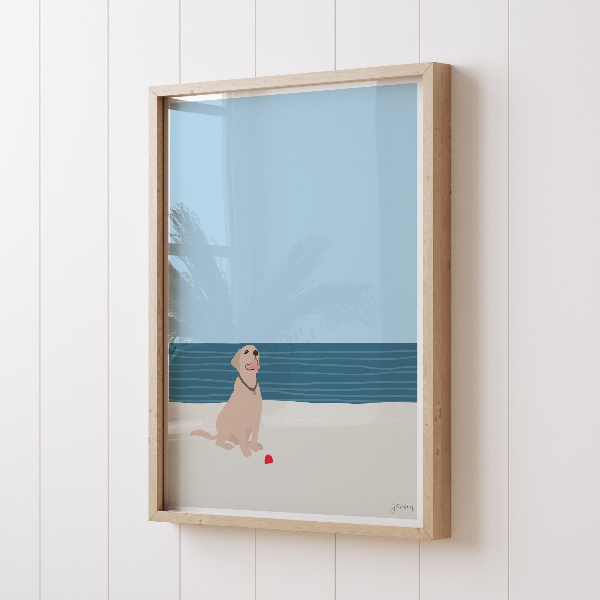 Labrador with Ball at Beach Art Print - Unframed or Framed - 160522