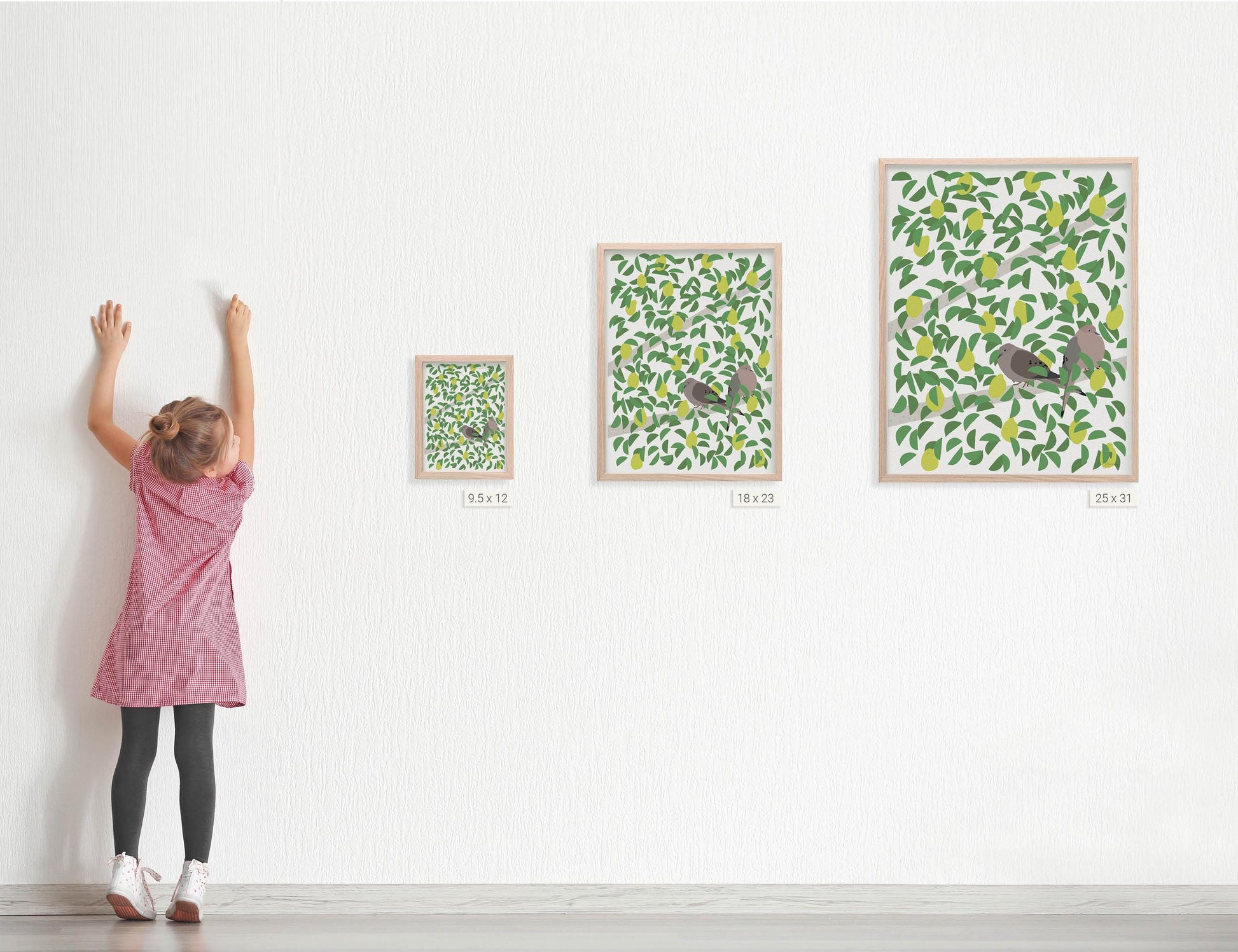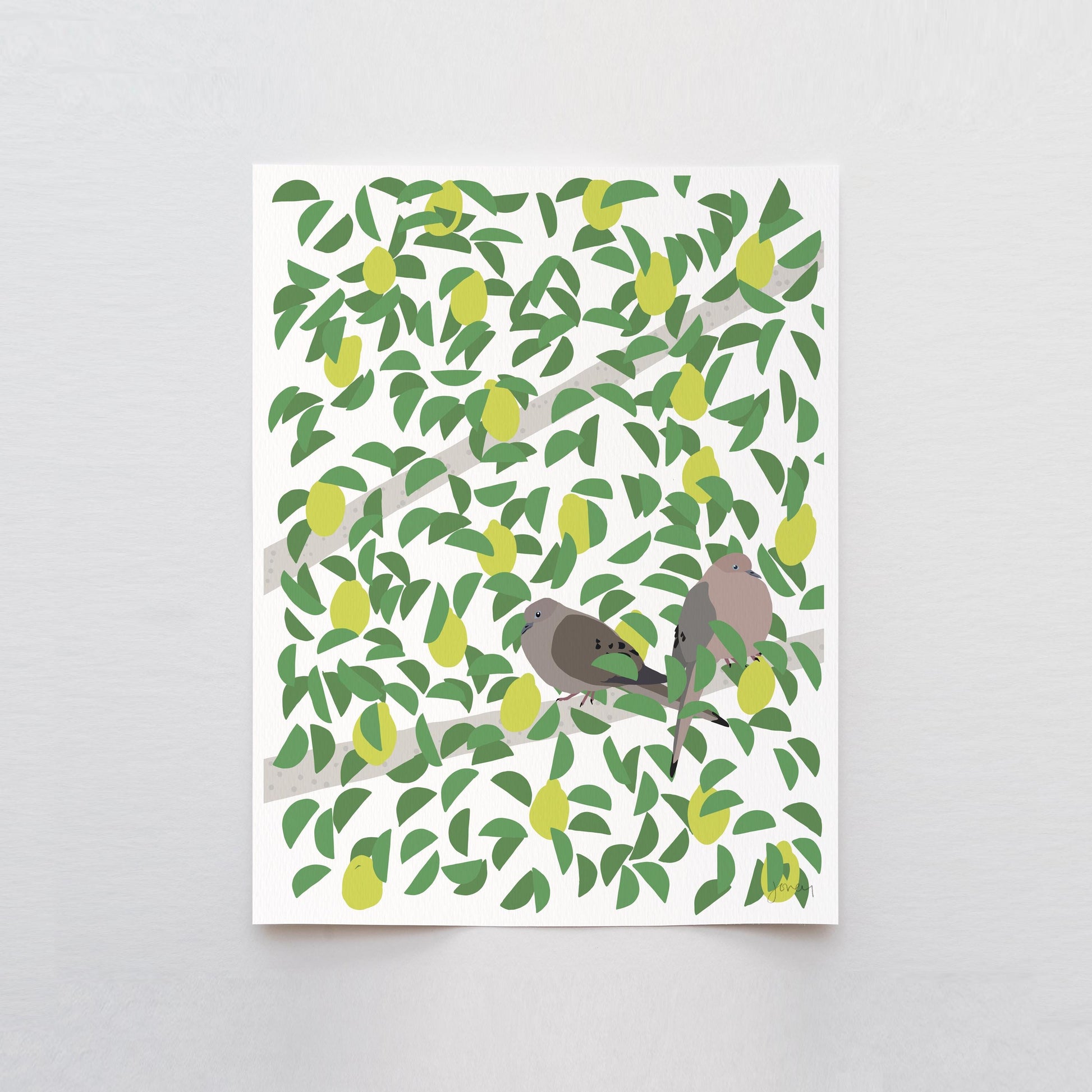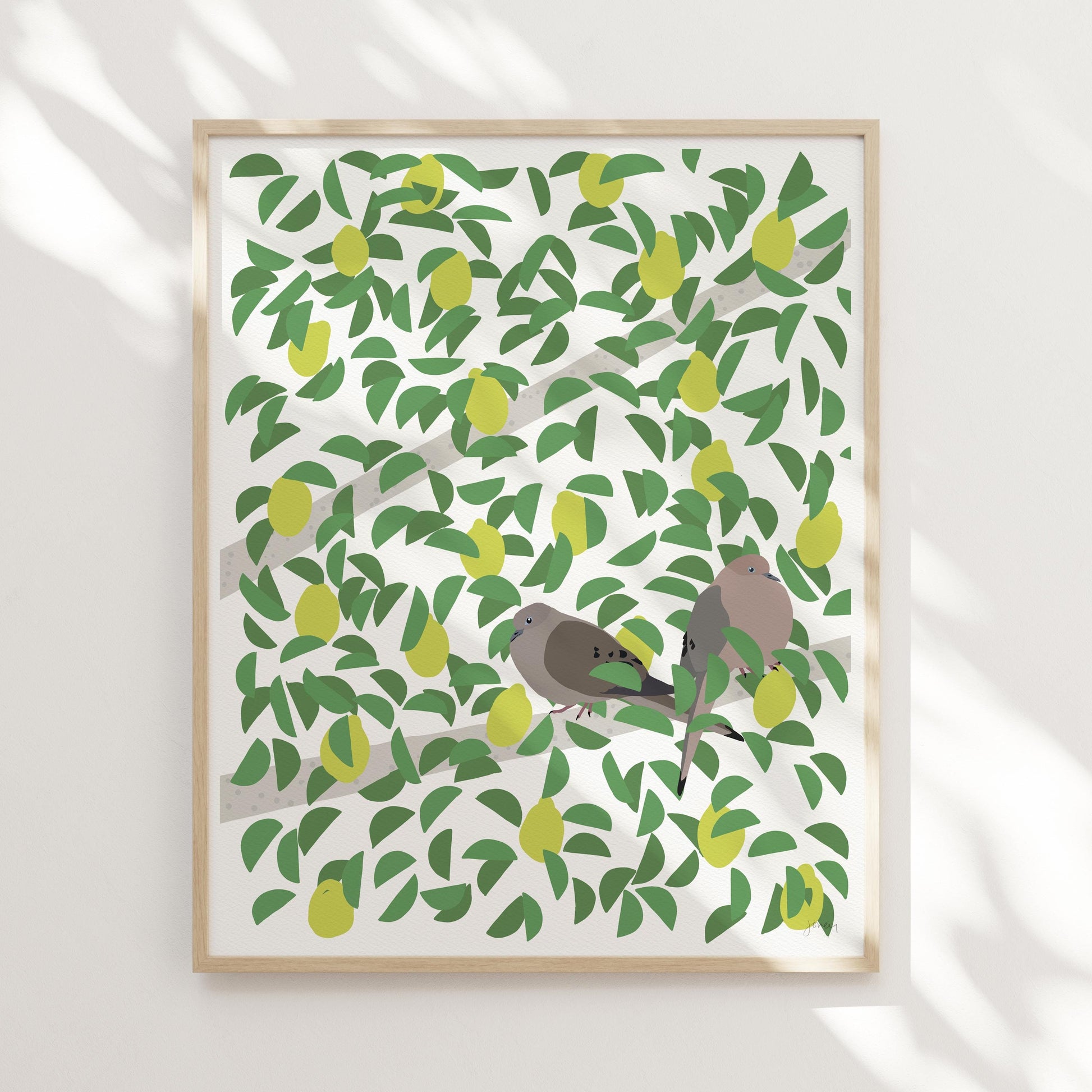 Lemon Tree with Mourning Doves Art Print - Unframed or Framed - 250203