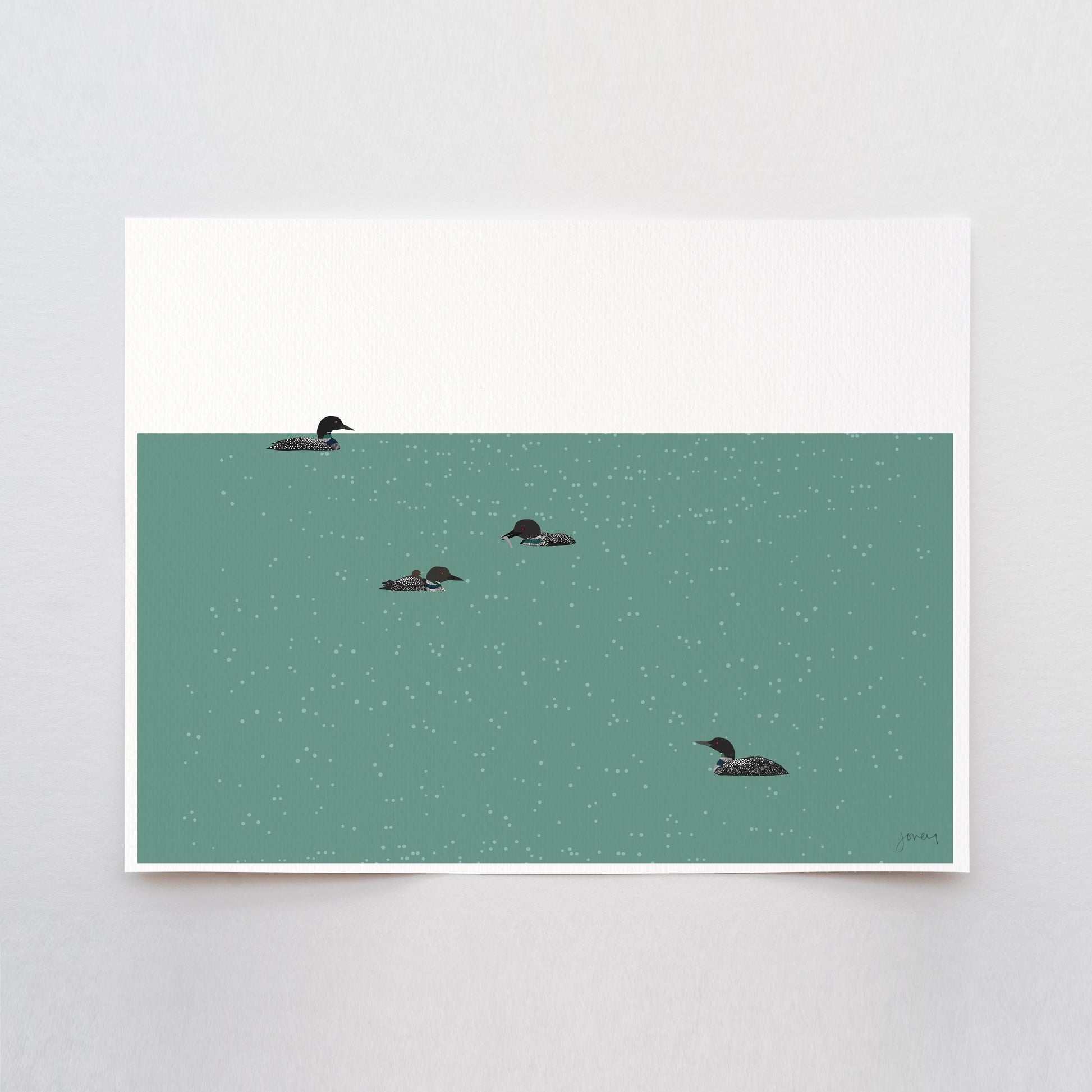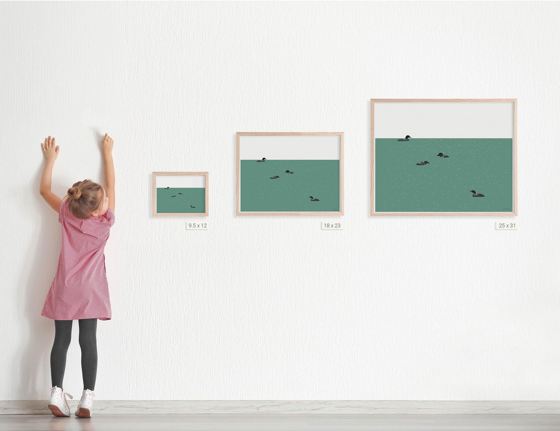 Bring the peaceful allure of the lake into your space with the “Loon Family” art print—perfect for adding a touch of lakeside tranquility to any room.
