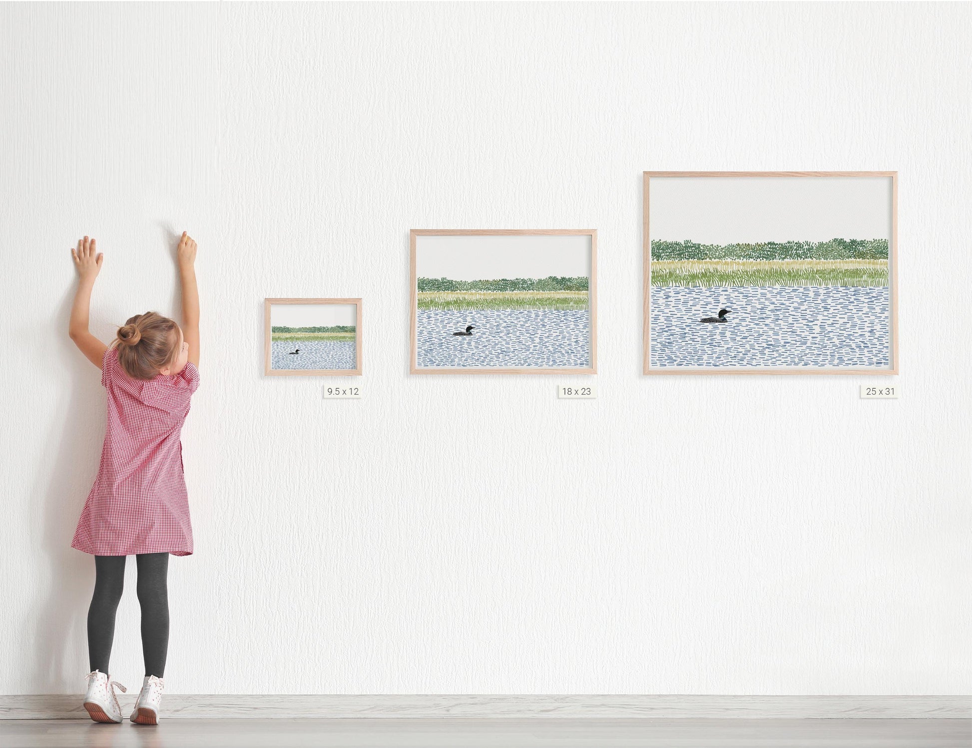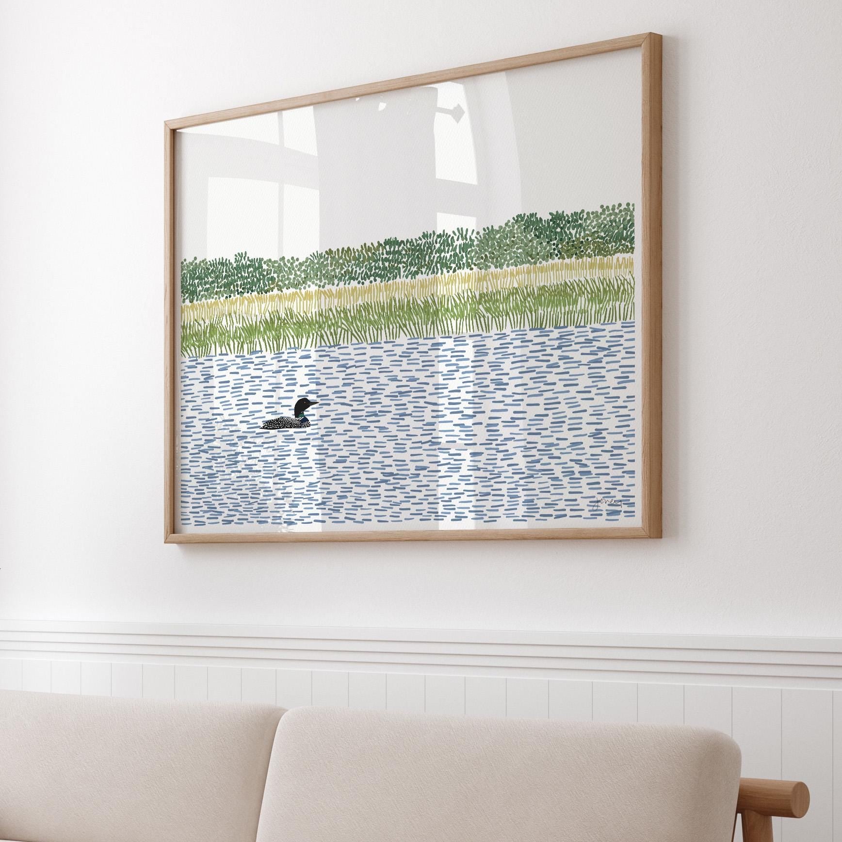 Add a peaceful, nature-inspired accent to your space with the “Loon on a River” art print.