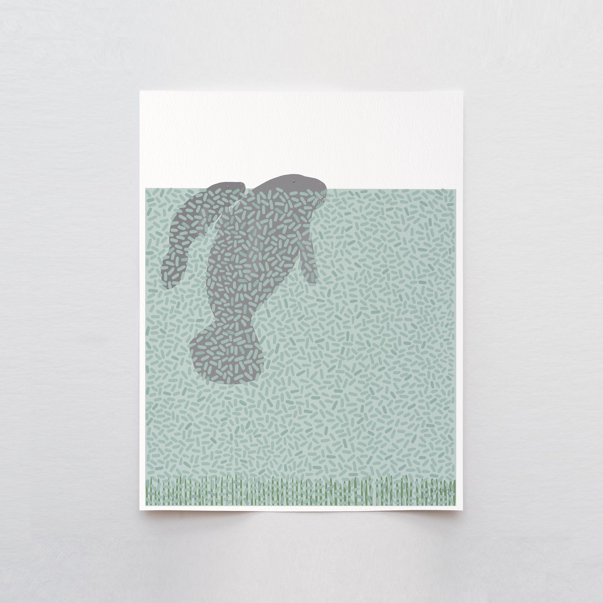 Float peacefully underwater with a mother and baby manatee in my "Manatee and Calf" art print. This piece captures the grace and elegance of manatees, inspired by a family trip to the Florida Everglades.