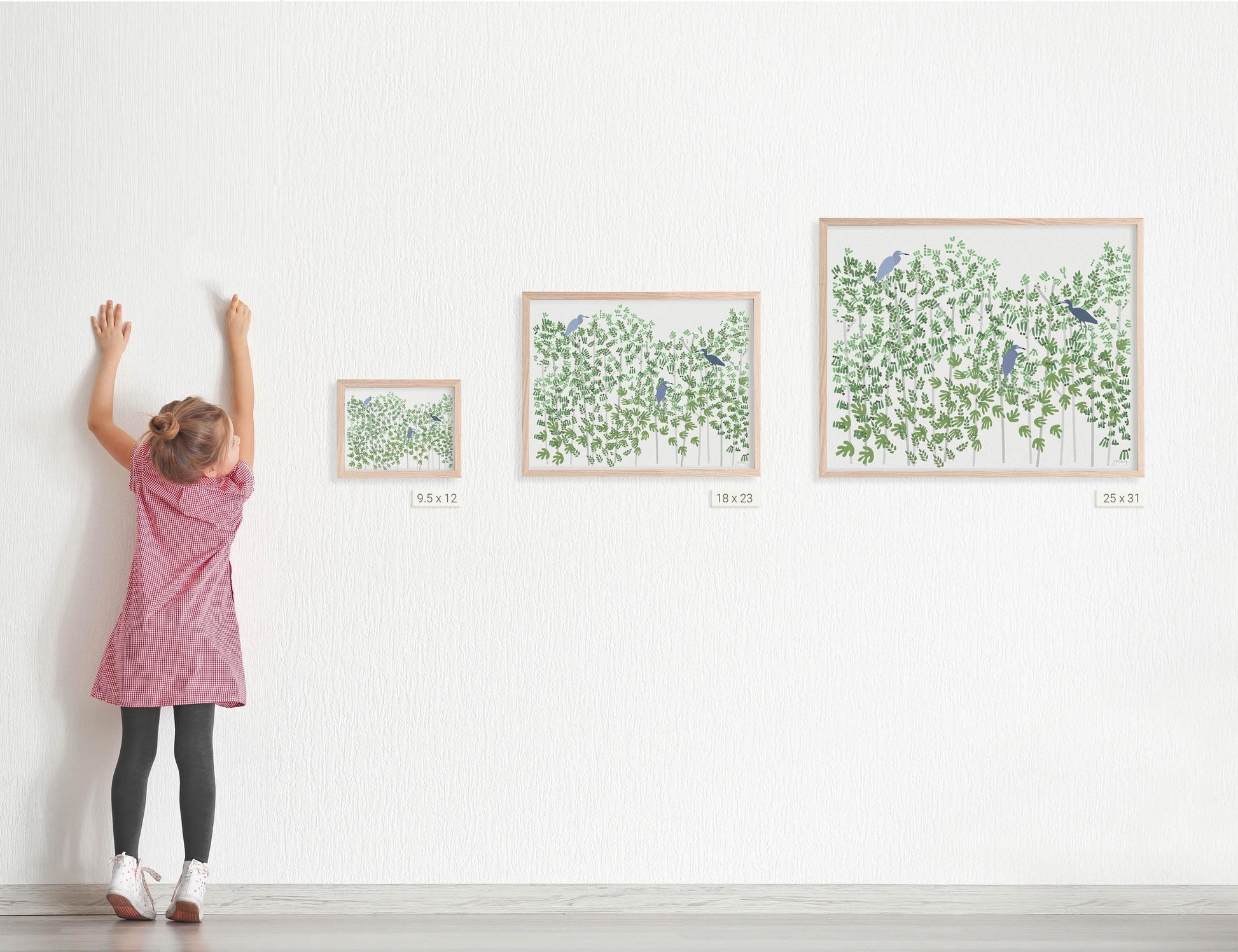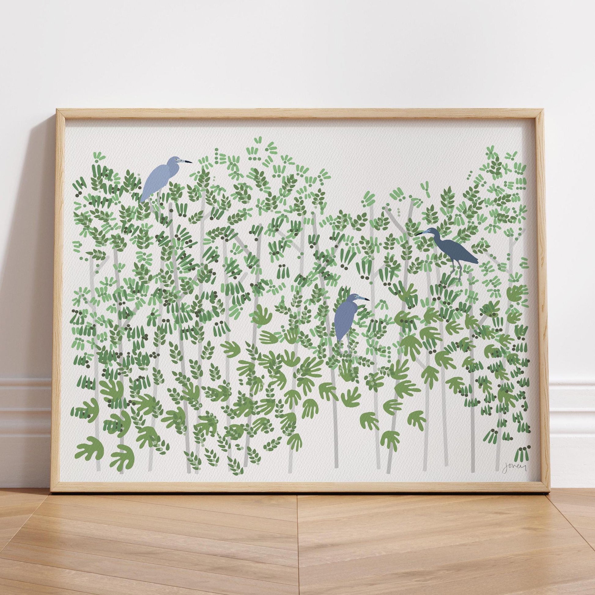 Add the calming beauty of the tropical coast to your home with the “Mangrove with Little Blue Herons” art print, a perfect blend of modern design and nature’s tranquility.