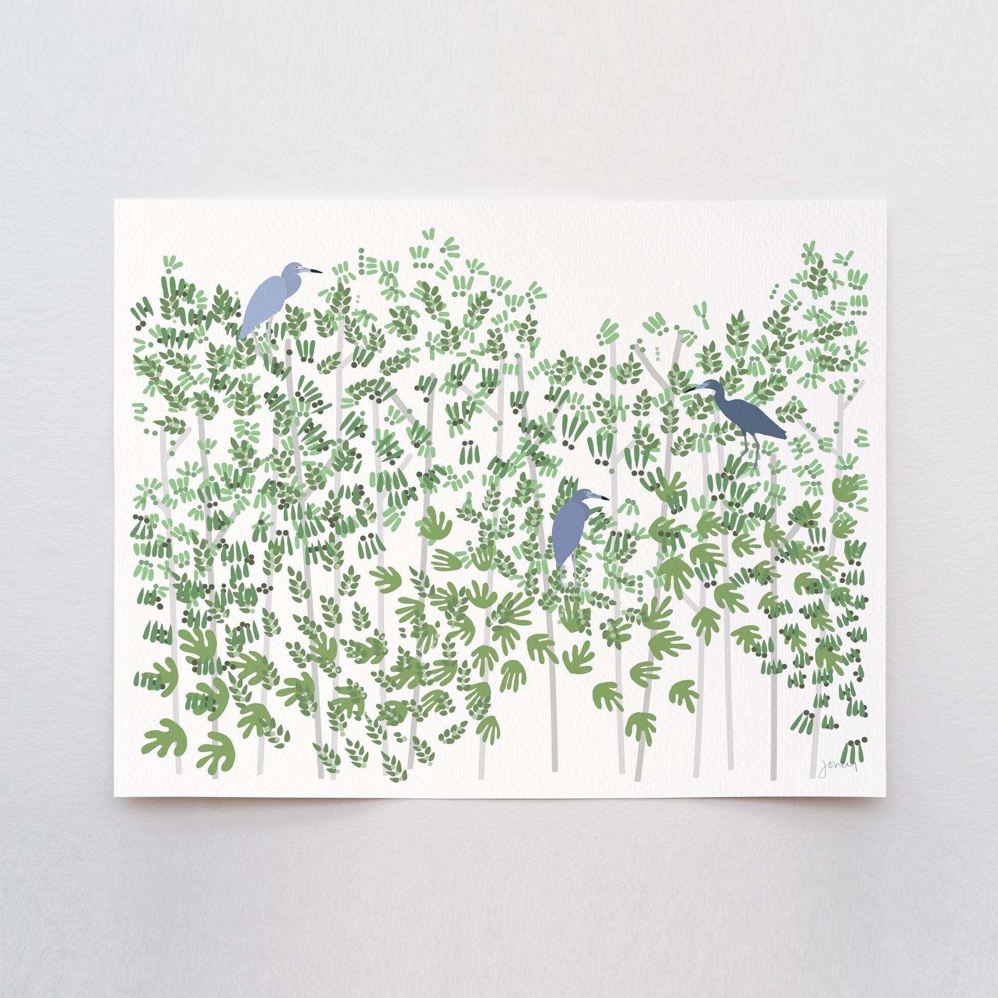 Mangrove with Little Blue Herons Art Print - Unframed or Framed - 250112