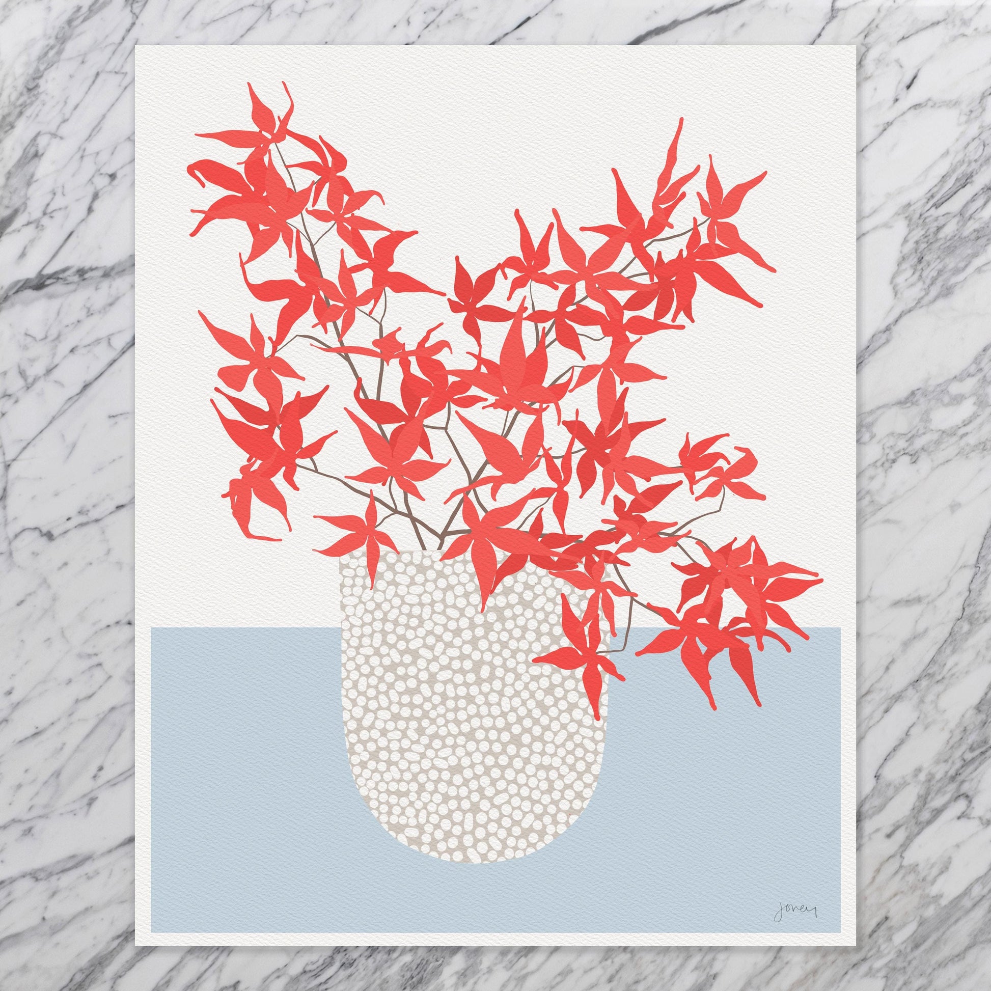 Bring the warmth and charm of autumn indoors with my “Maple Leaves in Vase” art print. This piece captures the vibrant hues of maple leaves elegantly arranged in a minimalist vase, embodying the beauty of nature with a modern touch. Perfect for adding a cozy, seasonal accent to any space.