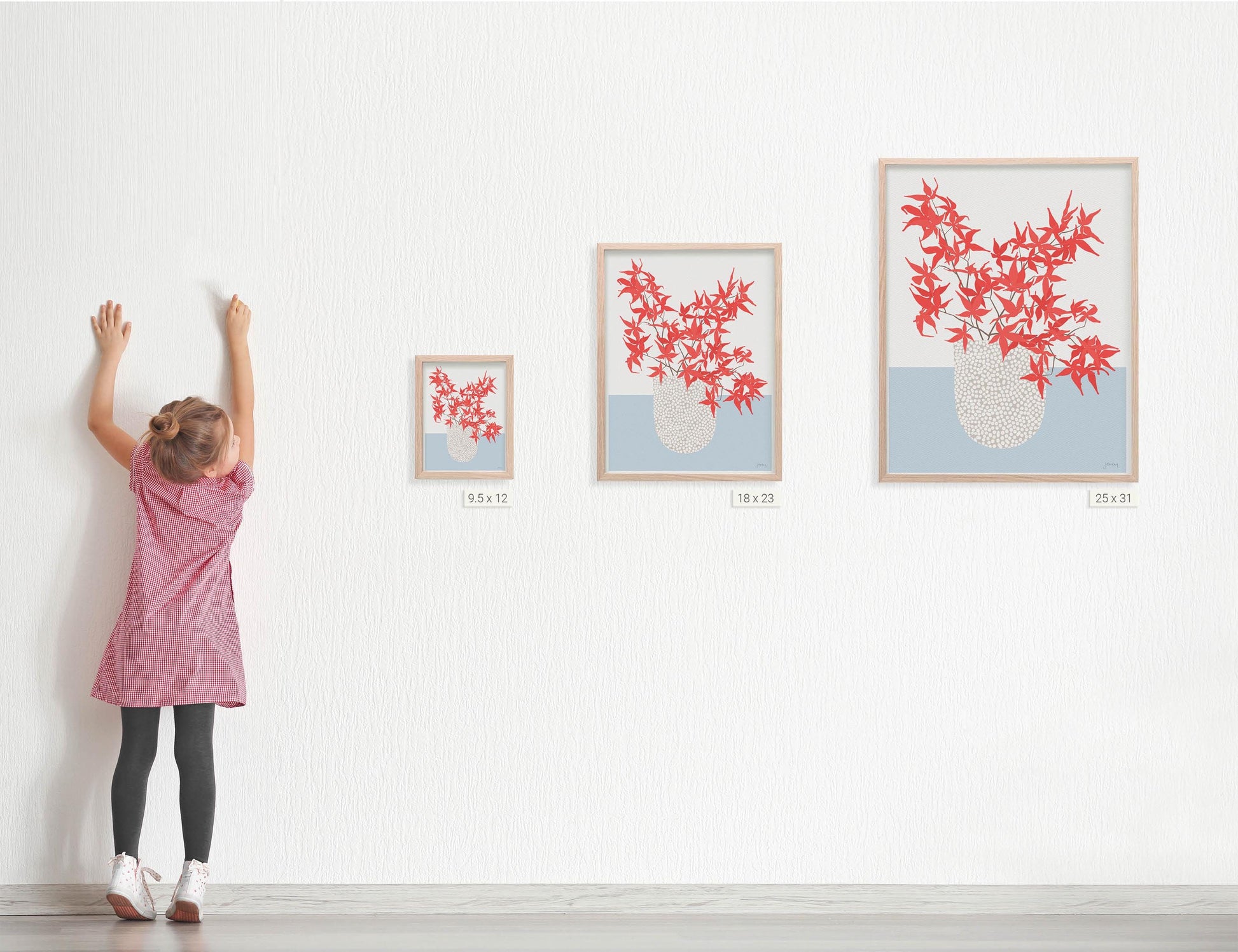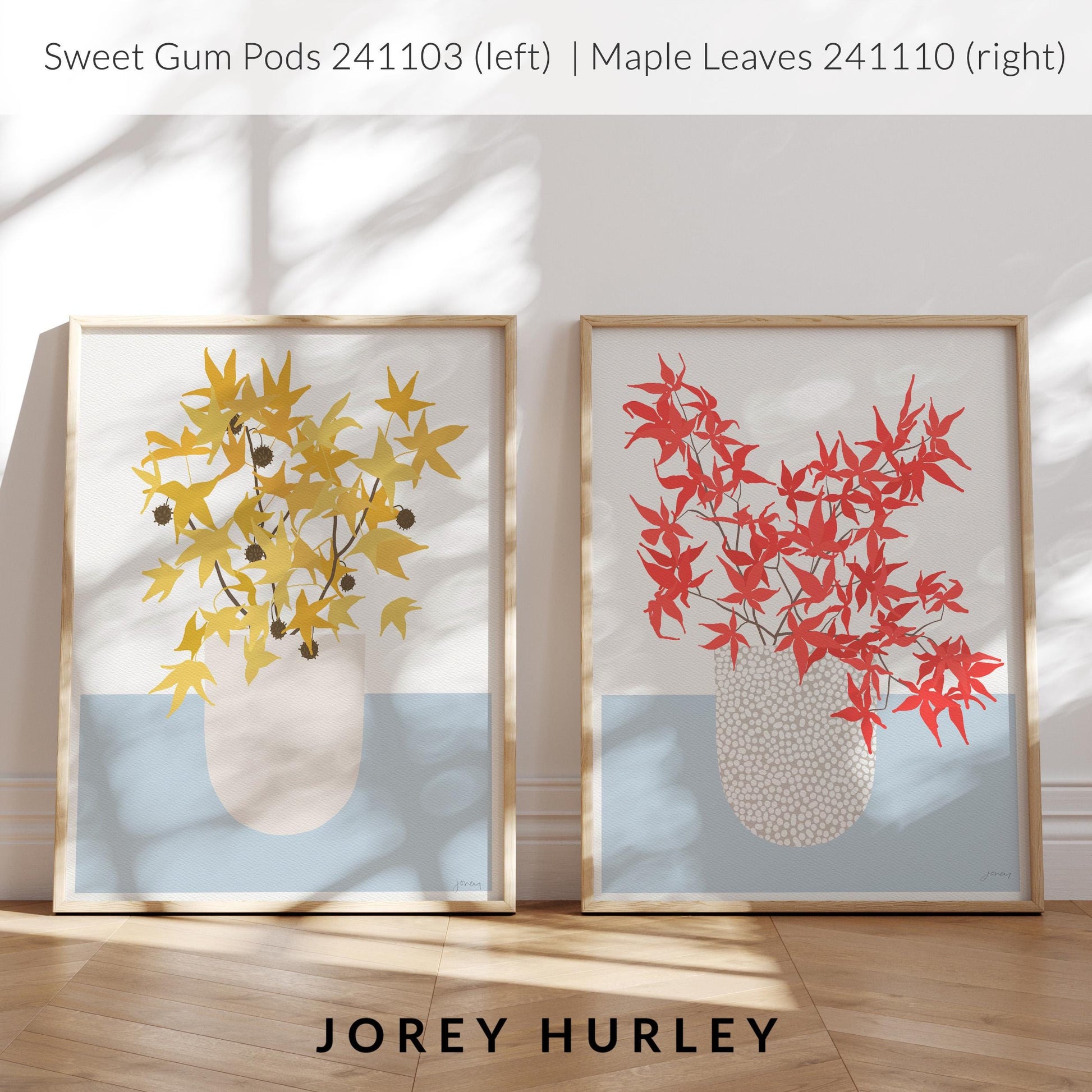 Enhance your home’s ambiance with the “Maple Leaves in Vase” art print—a serene addition to any modern décor.