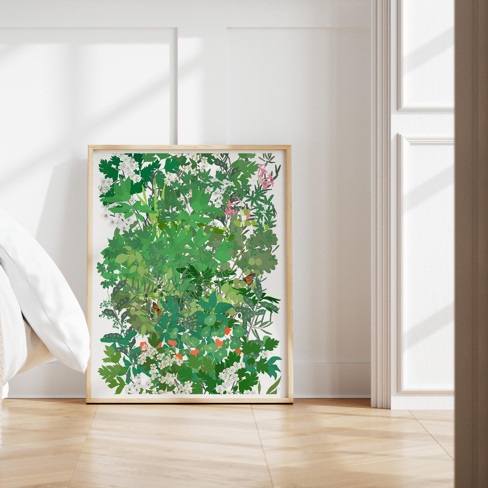 Enjoy the beauty of wildflowers with my Butterflies Mille Fleurs Art Print. This artwork showcases a delightful array of blooming wildflowers in intricate detail.