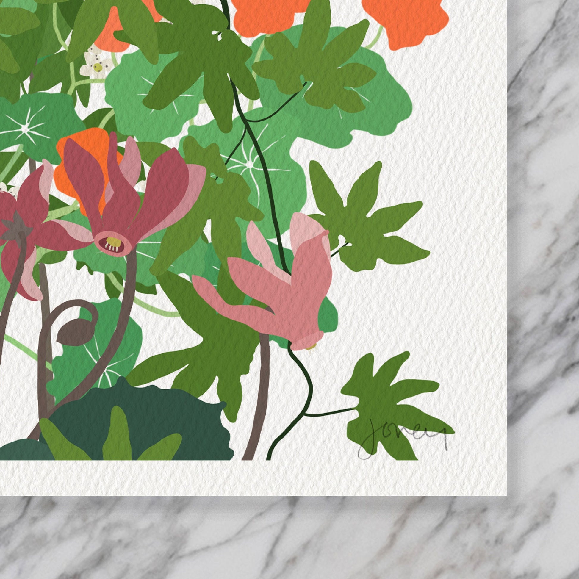 Printed on museum-quality archival paper, this art print captures the delicate beauty of water lilies amidst a tapestry of blooming flowers. Each print is thoughtfully created, signed, and printed by me, ensuring its authenticity and adding a personal touch.