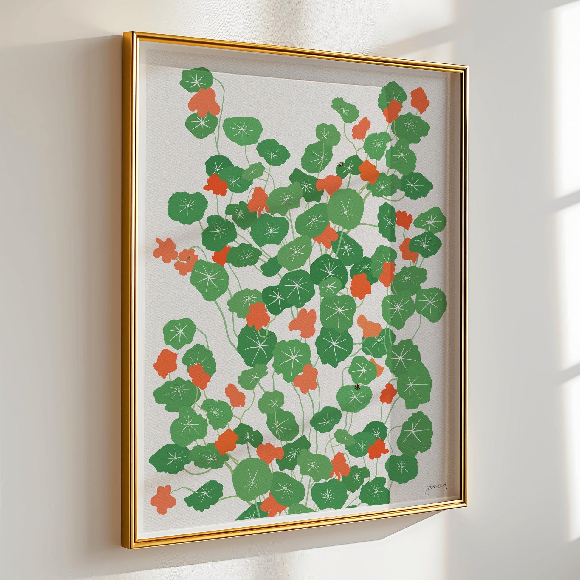 Bring the vibrant beauty of nasturtiums into your home with the “Nasturtium Plant” art print—a fresh and modern take on botanical art.