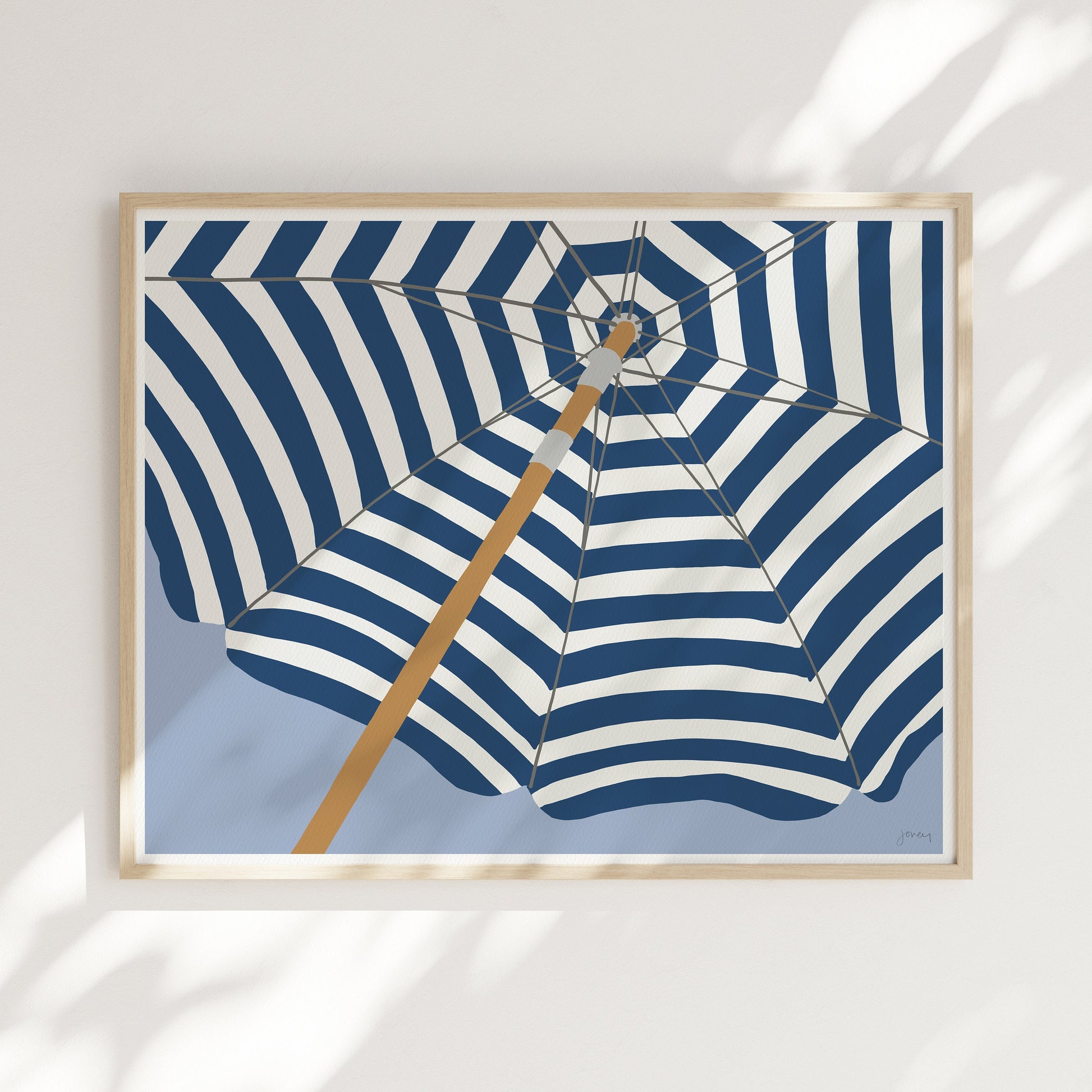 Remember relaxing on the beach with my "Navy Umbrella Art Print." This artwork captures the essence of summer under an umbrella on your favorite beach.