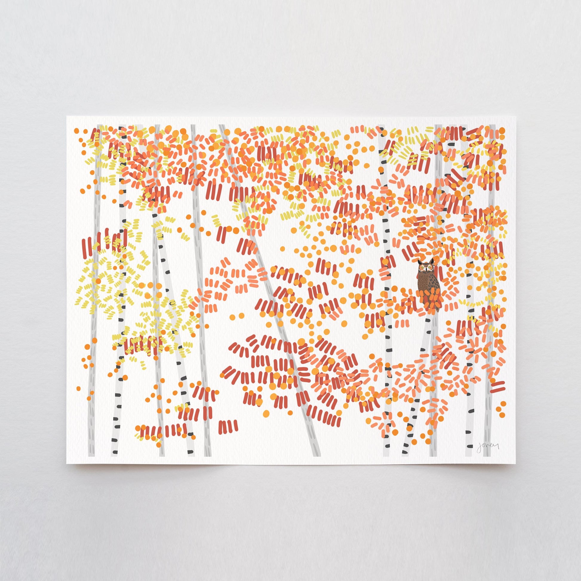Owl in Fall Foliage Art Print - Signed by Jorey Hurley - 251130