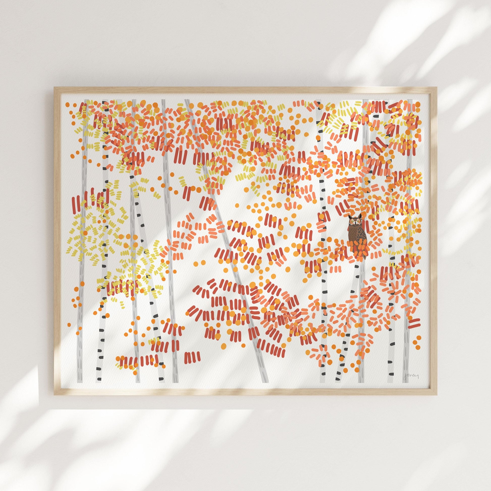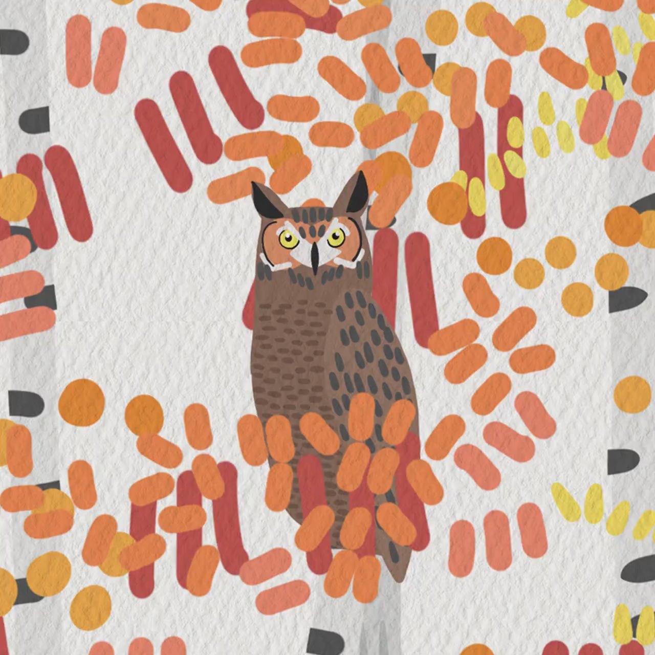 Bring the beauty of autumn indoors with my Owl in Fall Foliage Art Print. Inspired by quiet hikes through the forest, this piece captures the peaceful presence of an owl surrounded by rich fall color. Whether you're decorating your home or searching for a thoughtful gift for a bird lover, this artwork brings a touch of wilderness and minimalist calm to any space.