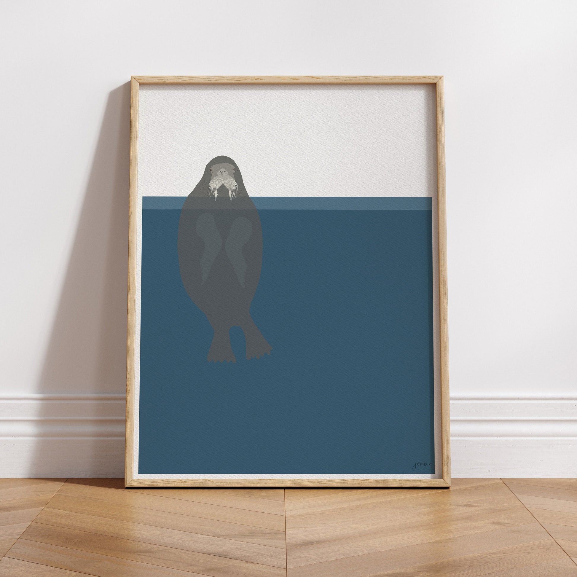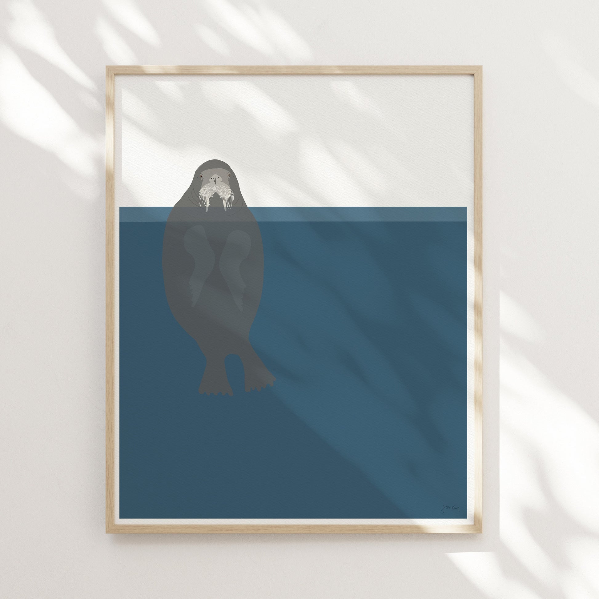 Printed on high-quality archival paper, this art print beautifully showcases the details of the walrus, from its distinctive tusks to its endearing expression. The gentle colors and soothing tones create a serene and inviting atmosphere.