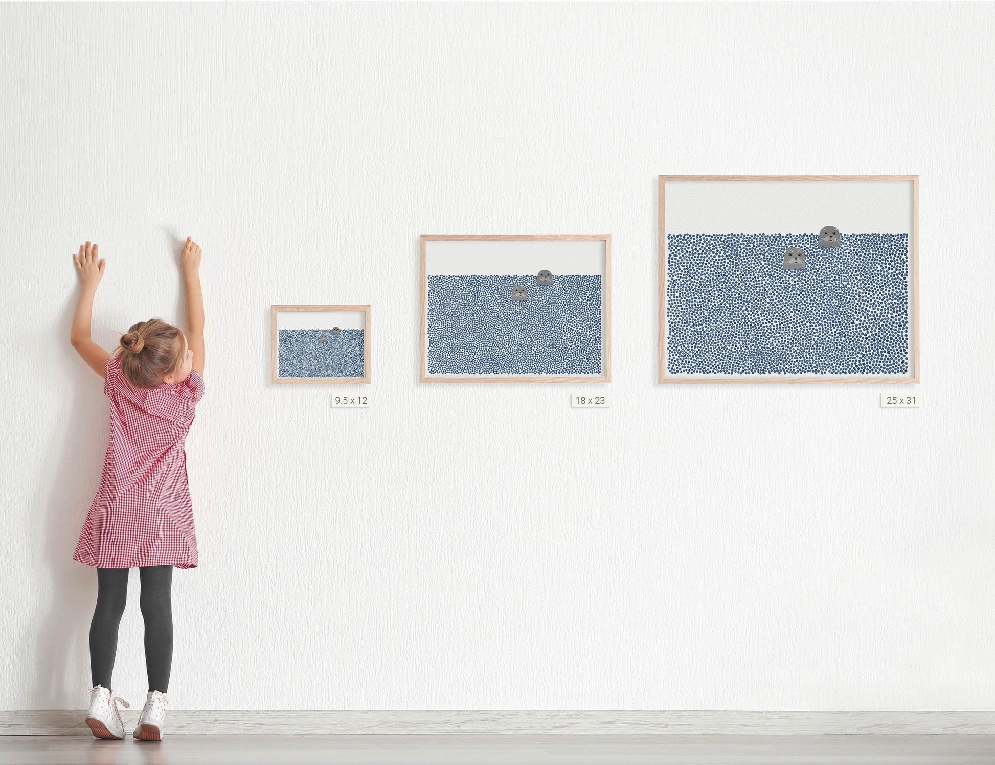 Choose between framed or unframed art. Our thoughtfully selected frames, made from sustainably sourced solid maple, arrive ready to hang and beautifully complement the artwork. Alternatively, unframed prints are available in standard sizes, such as 8"x10" and 16"x20", allowing you to choose your own frame. Custom sizes are also available upon request.