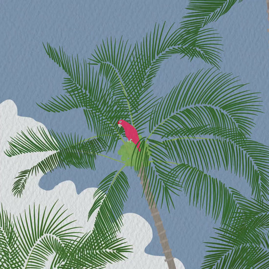 Let the vivid hues and tropical charm of “Parrots in Palm Trees” bring warmth and relaxation to your space.