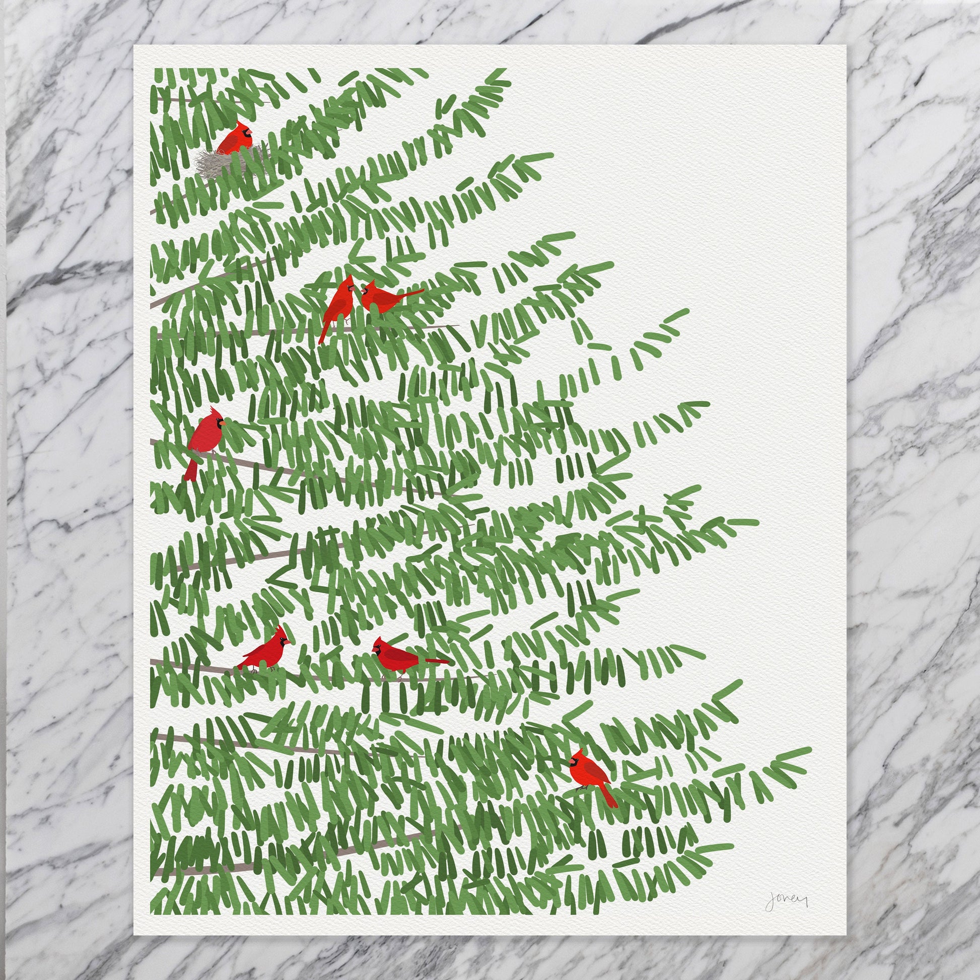 Celebrate the natural beauty of the forest with my "Pine Tree Print with Red Cardinal Birds" art print. This enchanting piece captures the vibrant red cardinals perched gracefully on a majestic pine tree, bringing a touch of contemporary charm and elegance into your home.