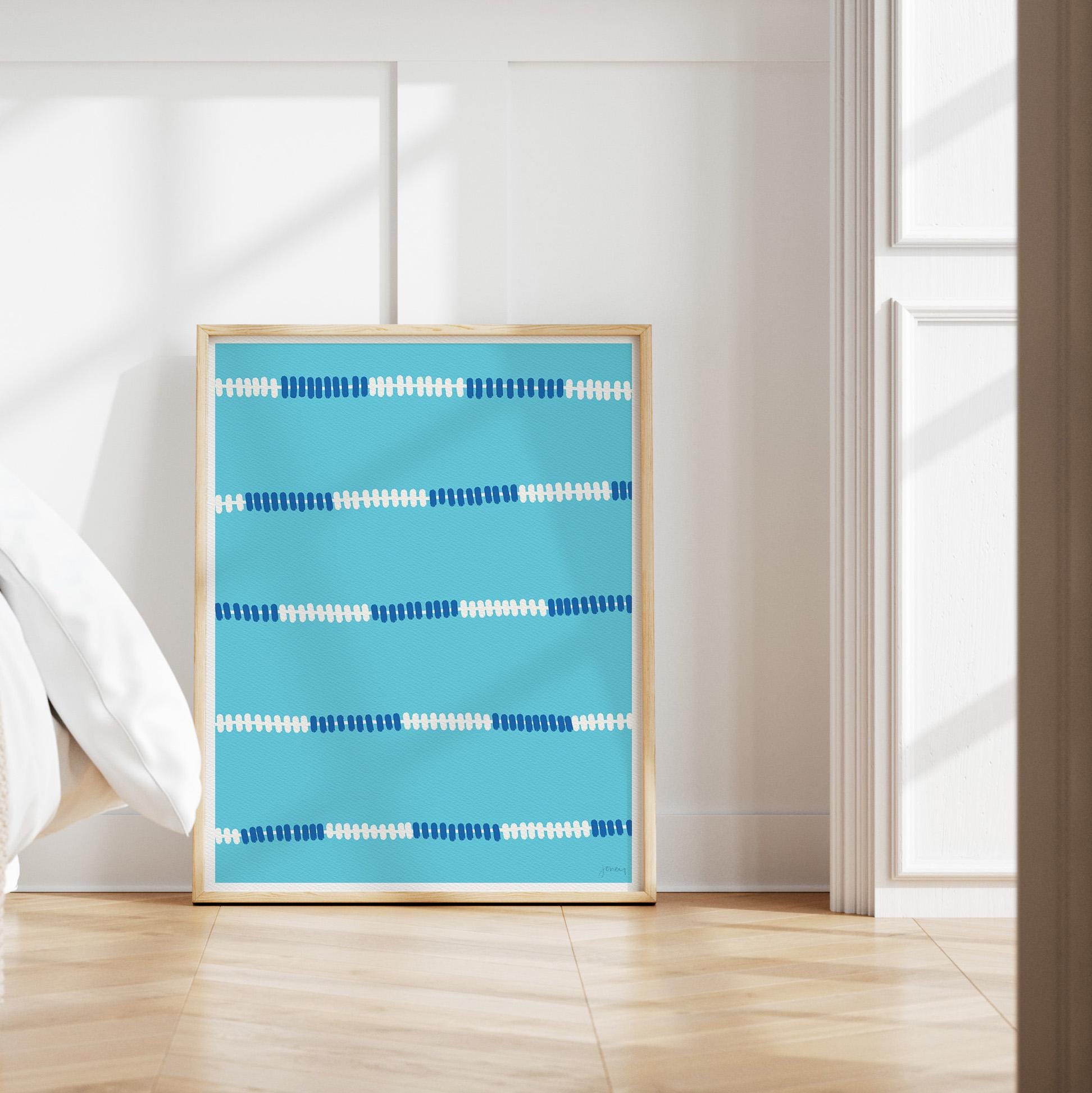 Capture the serene rhythm of the pool with my “Pool Lane Lines” art print. This minimalist design highlights the soothing symmetry of lane lines, creating a striking yet calming statement piece. Perfect for those who love modern boho decor or want to bring the elegance of aquatic life into their space.