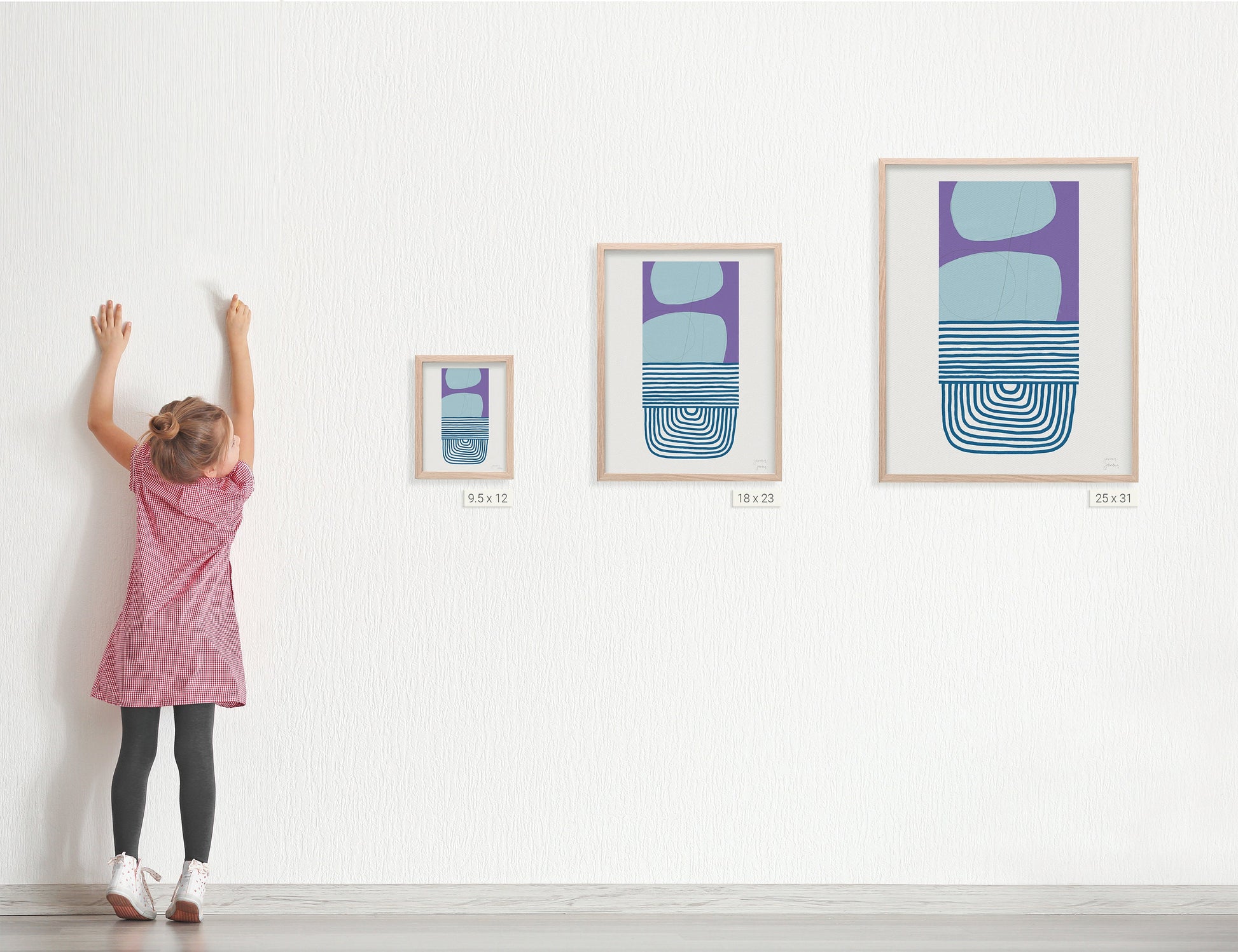 Choose between framed or unframed art in a variety of sizes. Our carefully-selected frames, made from solid maple, arrive ready-to-hang and complement the contemporary aesthetic of the art. Alternatively, the unframed prints are available in standard sizes, such as 8"x10" and 16"x20", making it easy to find frames that match your existing decor. If you would like a custom size, please let us know, and we'll be happy to help.