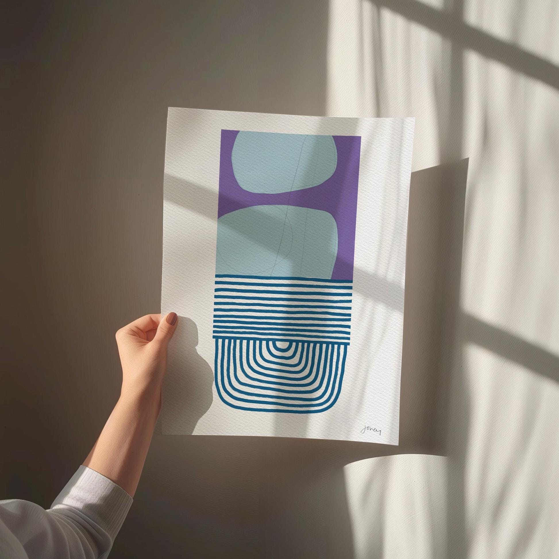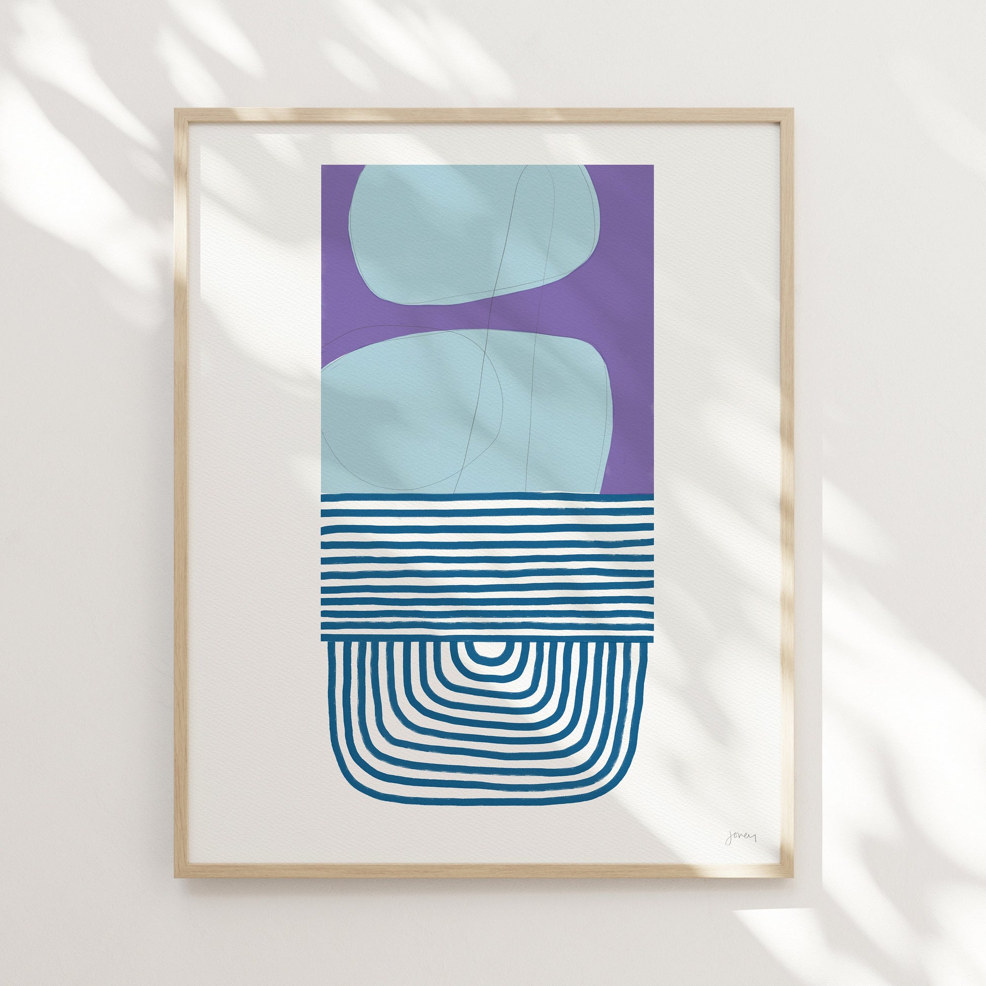 Enjoy the peacefulness and balance of abstract art with my Purple and Blue Striped Abstract Art Print. As part of a series I made exploring the interplay of line and color, this artwork invites you to meditate on it.