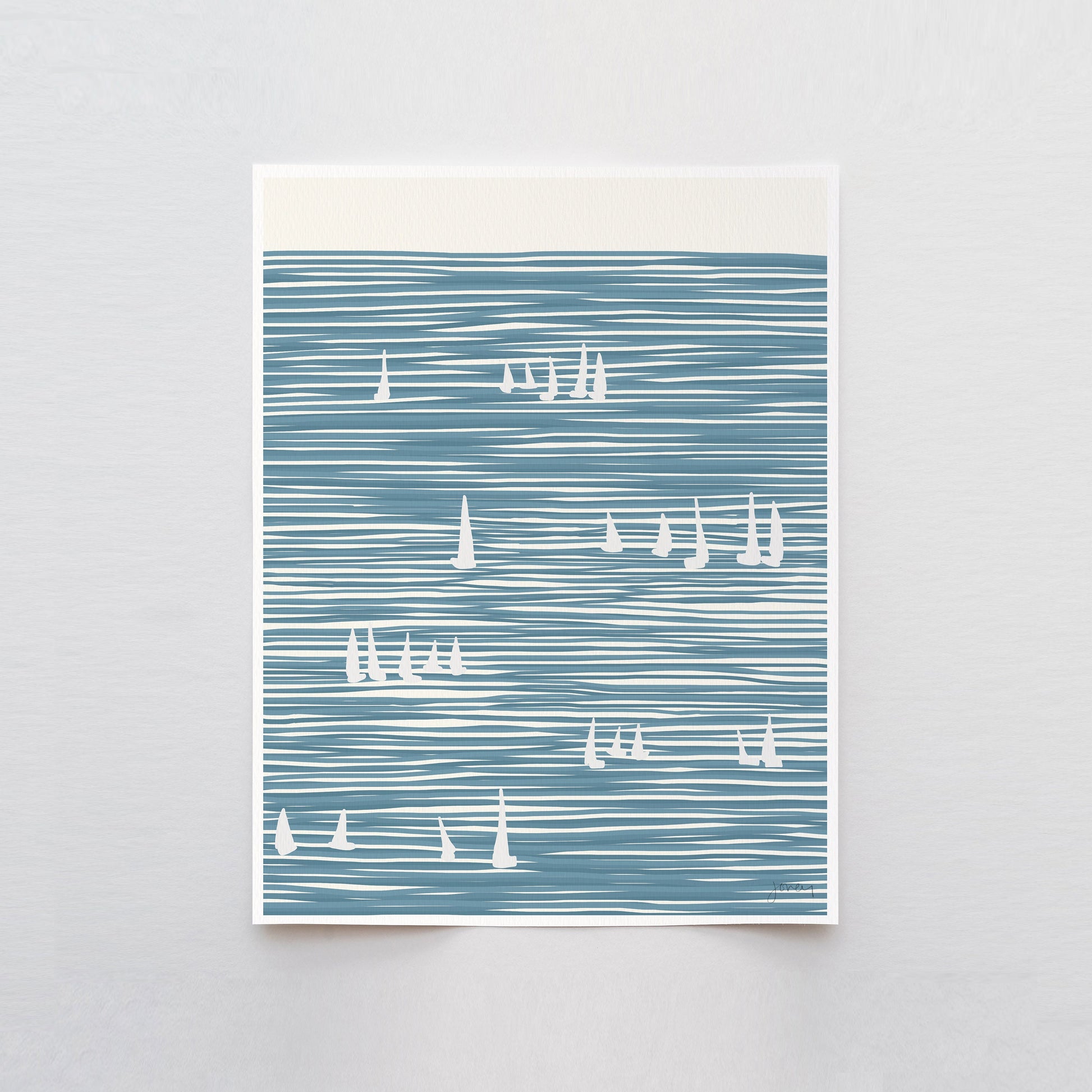 Sailboats on Striped Water Art Print - Unframed or Framed - 140324