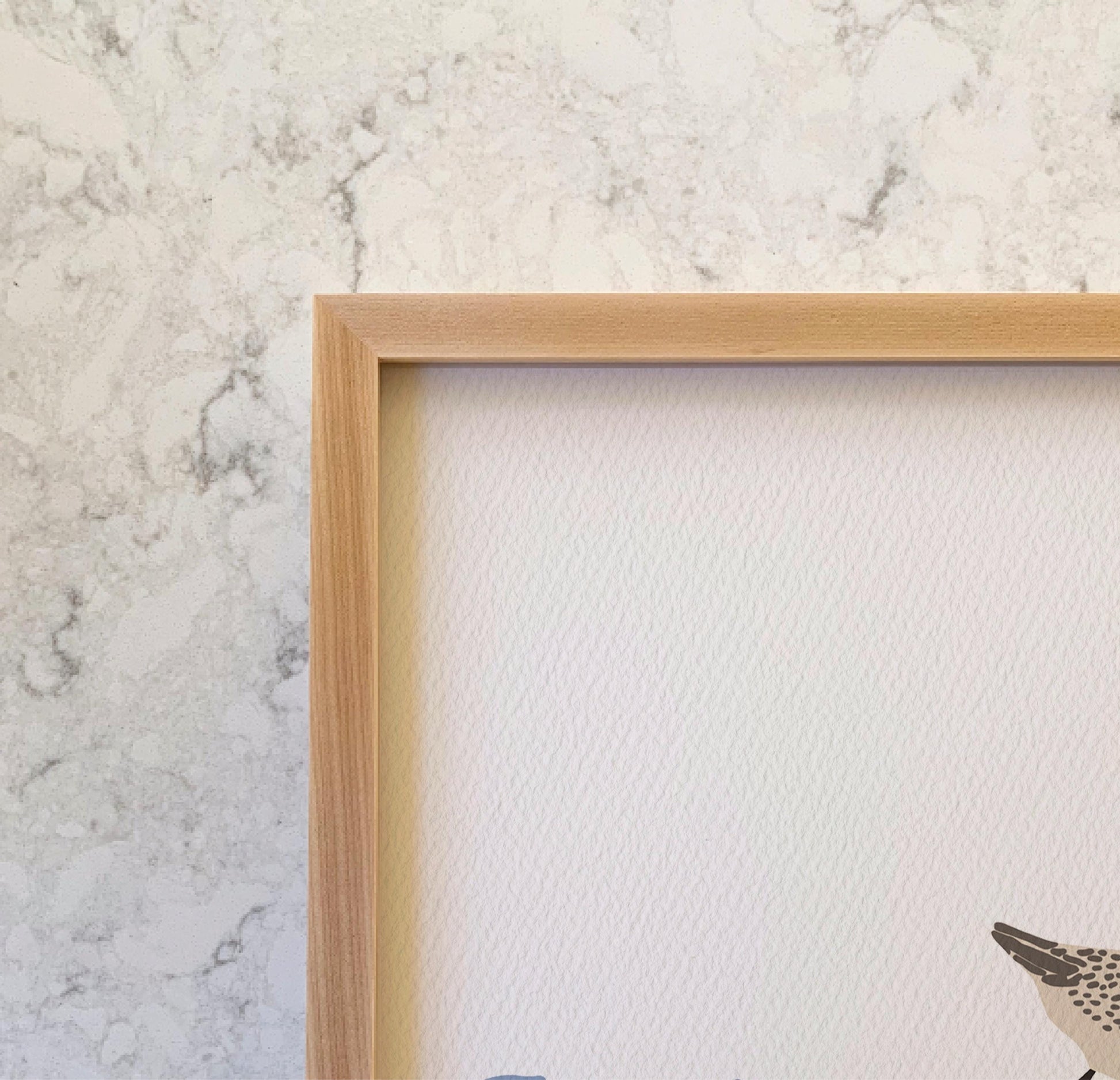 Choose between framed or unframed options. Our carefully-selected frames, made from sustainably-sourced solid maple, offer a refined ready-to-hang presentation that complements the coastal aesthetic of the artwork. Alternatively, the unframed prints are available in standard sizes, making it convenient for you to choose your own frame. Should you require a custom size, please don't hesitate to let us know.