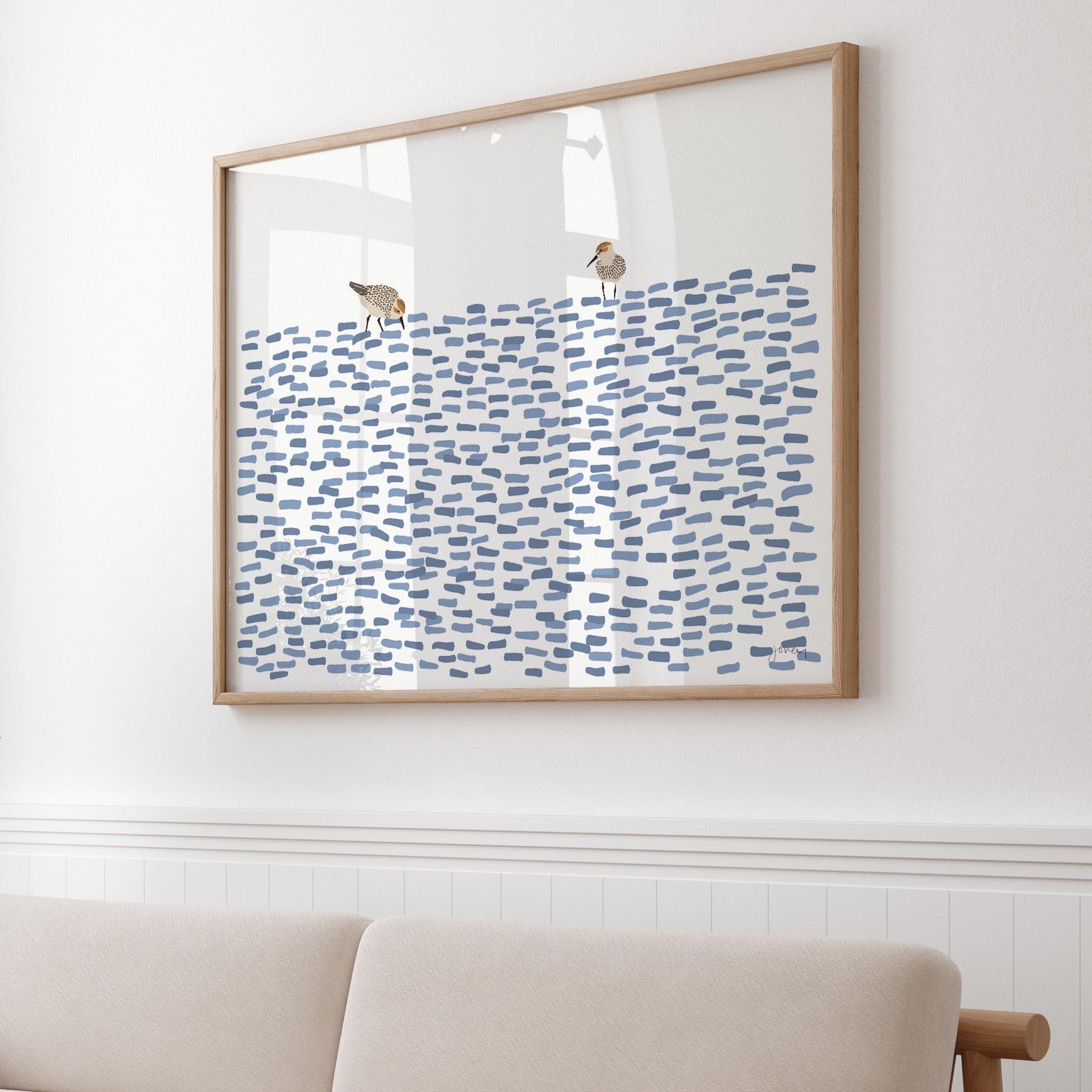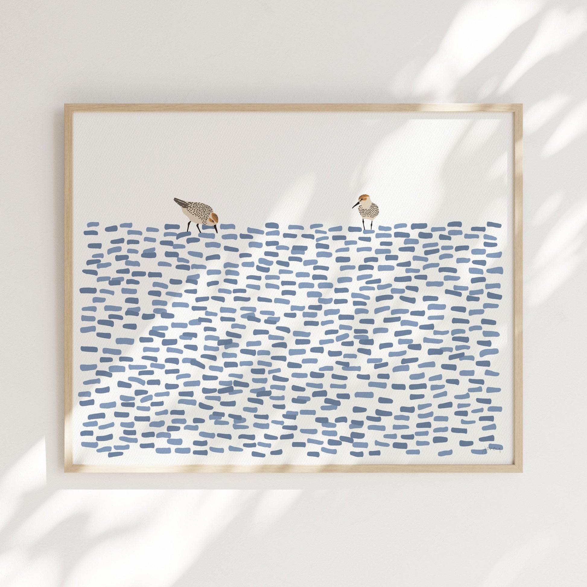Enjoy the feel of coastal living with our 'Sandpipers Abstract' art print, a timeless addition to any coastal-themed decor.