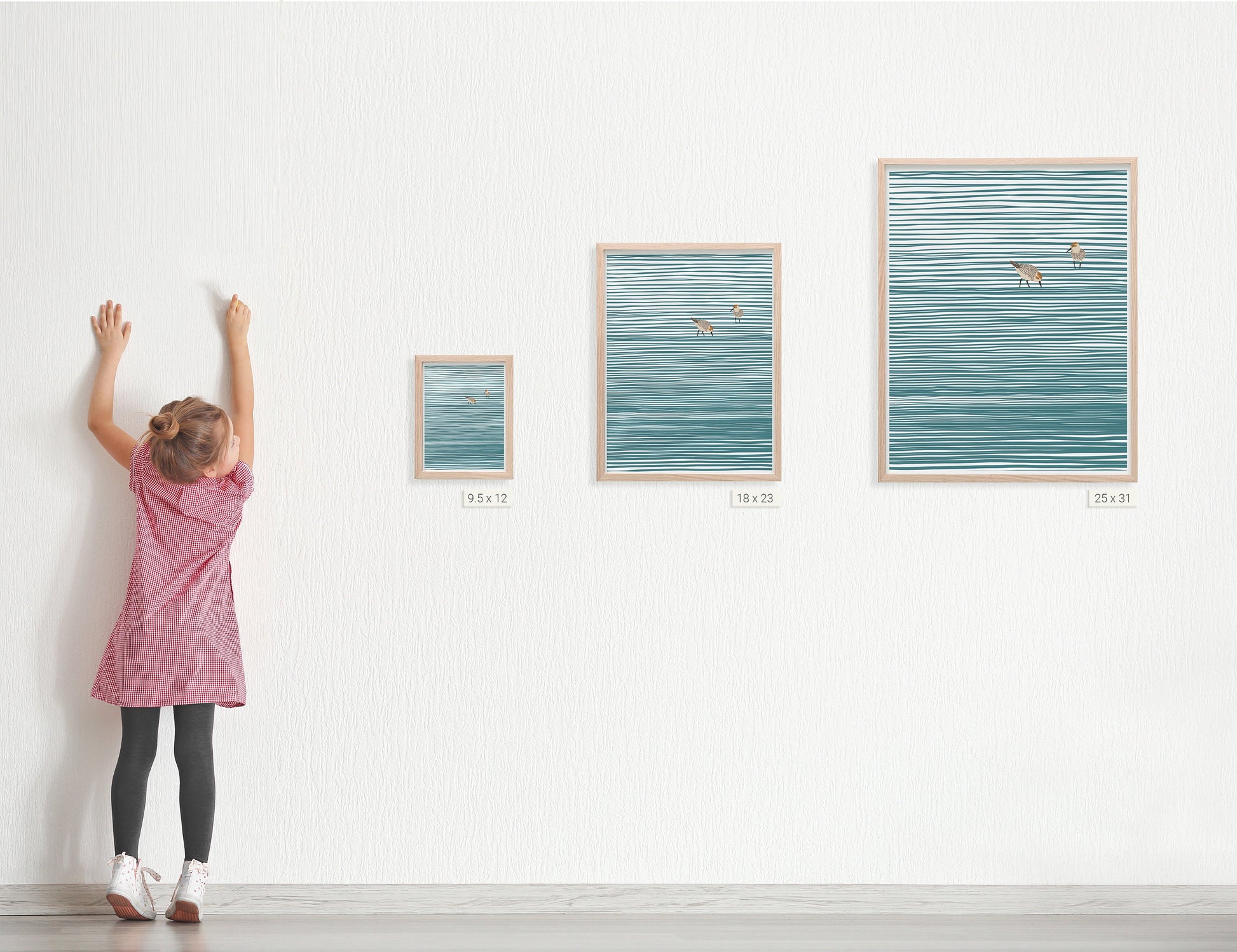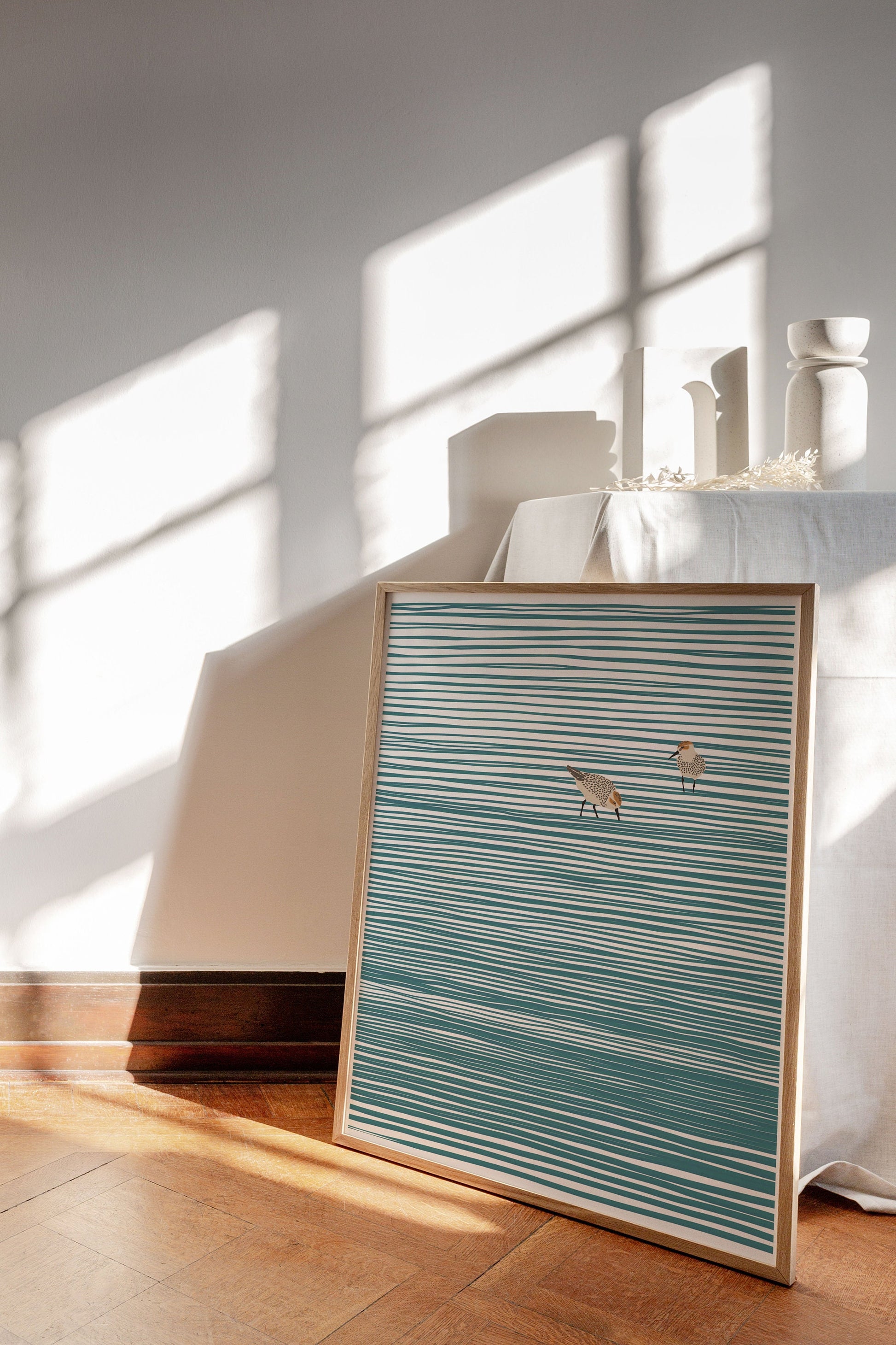Enjoy the feel of coastal living with our 'Sandpipers' art print, a timeless addition to any coastal-themed decor.