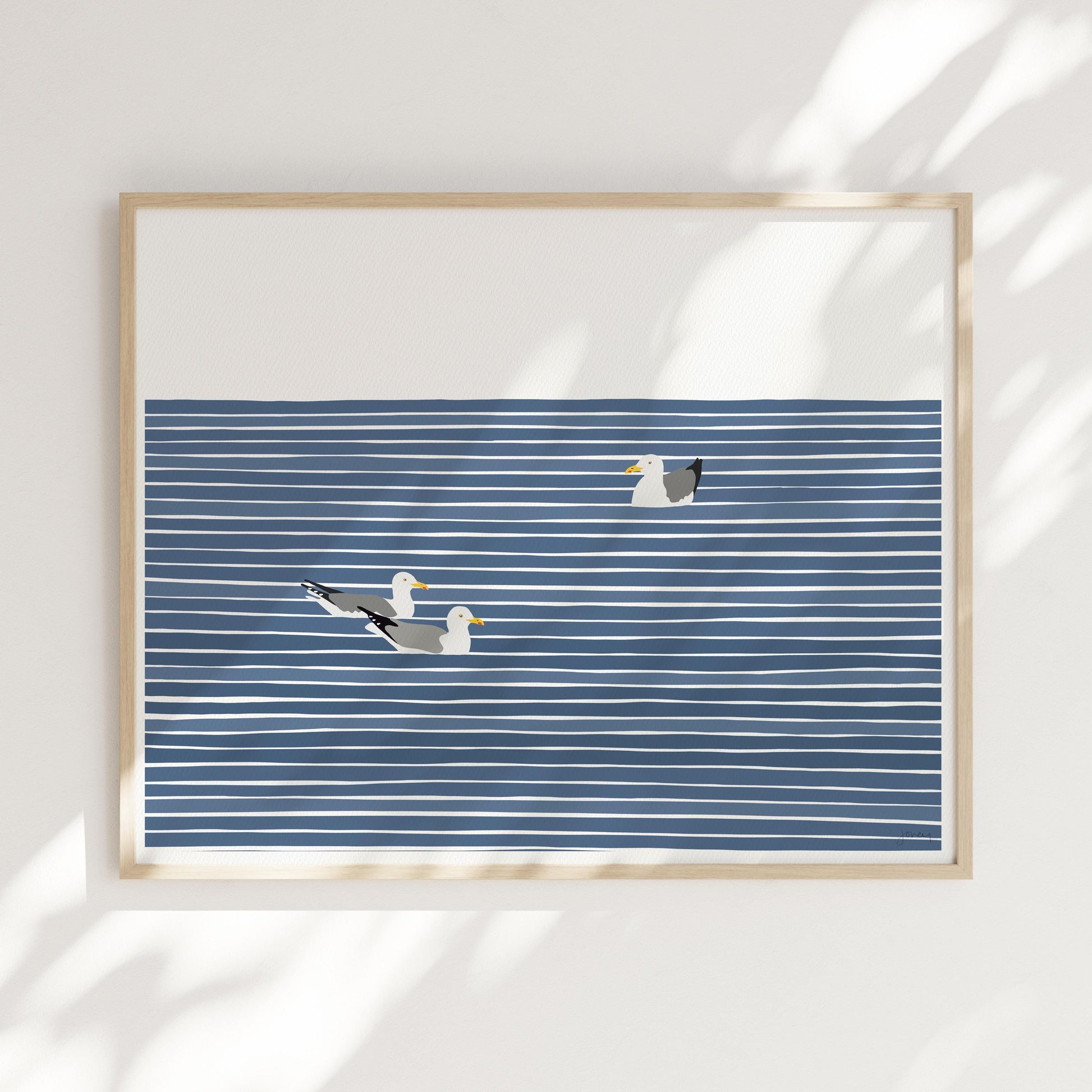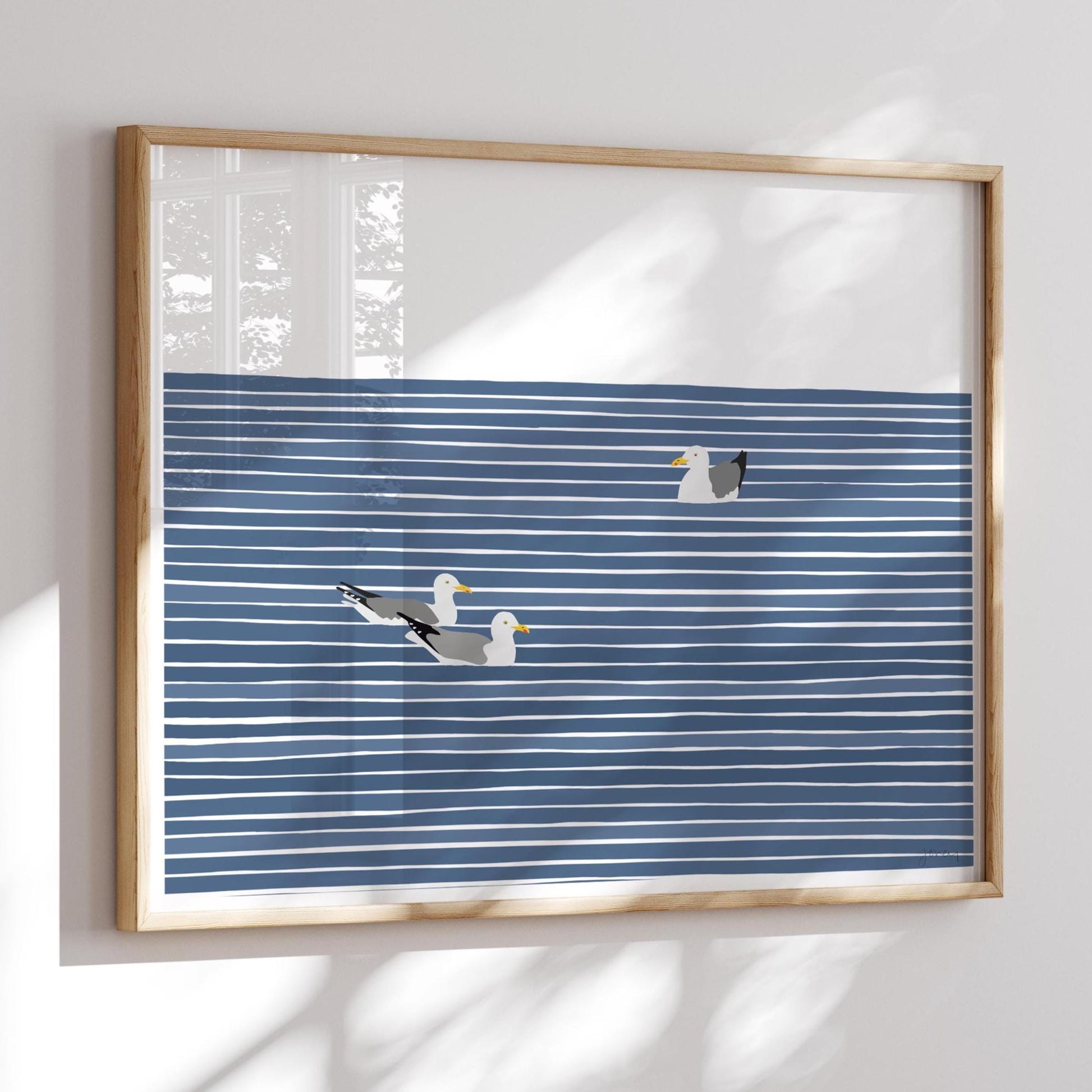 Bring the charm of coastal life into your home with my “Seagull Family” art print. This serene, modern piece captures a quiet moment shared by a trio of seagulls, evoking the peaceful rhythms of life by the sea. The minimalist composition makes it a beautiful addition to beach houses or any space inspired by the coast.
