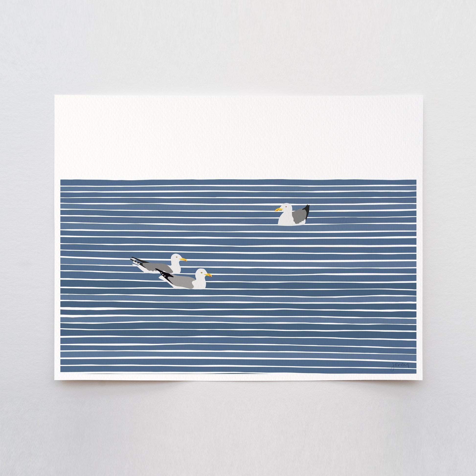 Celebrate the quiet beauty of shore life with the “Seagull Family” art print.