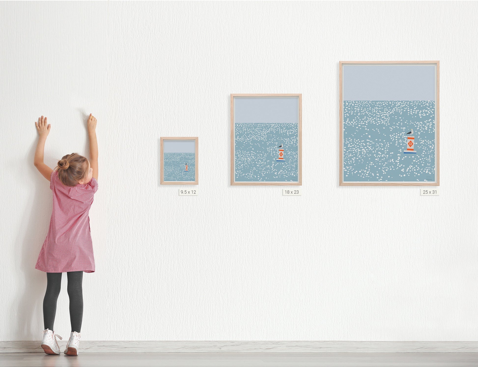 Your art print will be carefully packaged in our studio to ensure its safe delivery. Each print is protected with waterproof plastic and securely shipped in sturdy cardboard packaging, guaranteeing its pristine condition upon arrival. The large framed prints measuring 25"x31" are currently available for shipping within the US only, while all other sizes, both framed and unframed, can be shipped worldwide.