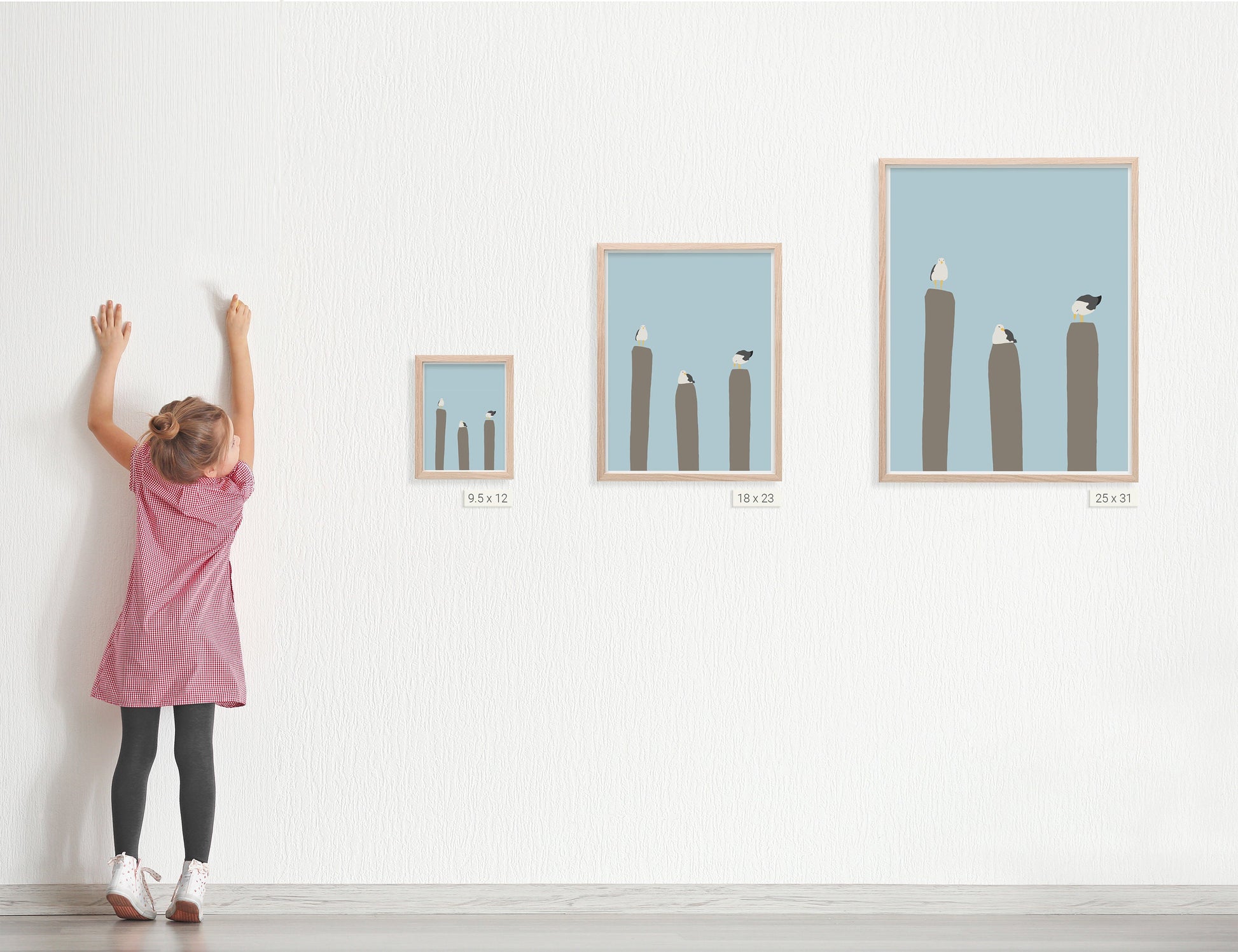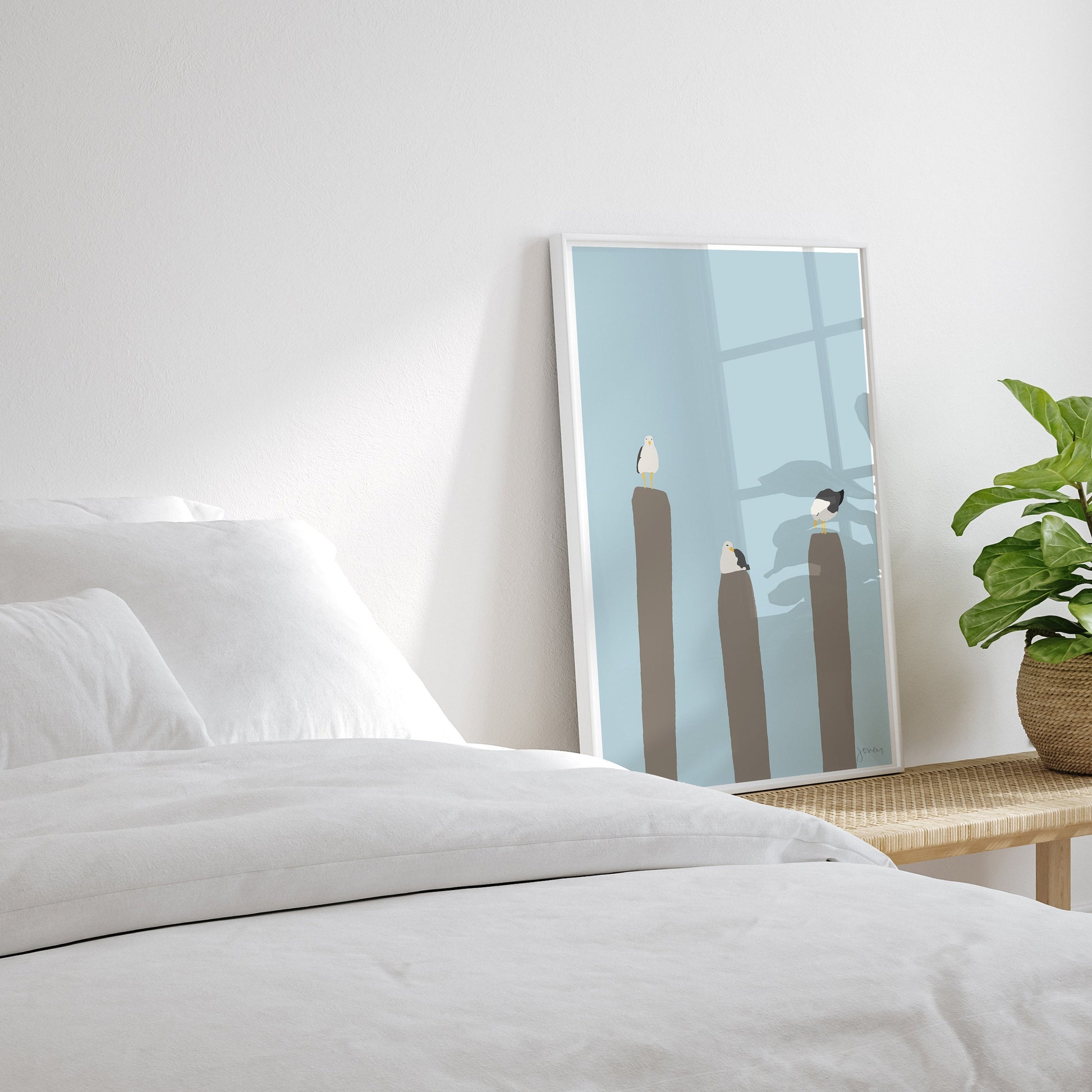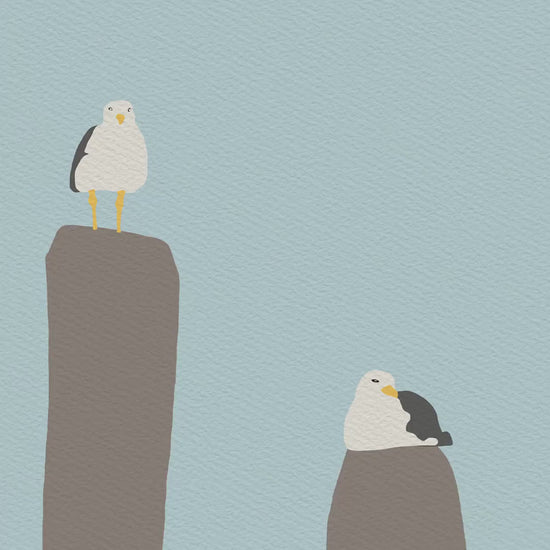 Invite the tranquil beauty of coastal life into your home with our "Seagulls Perched on Pier" art print, a timeless reminder of the coastal charm.