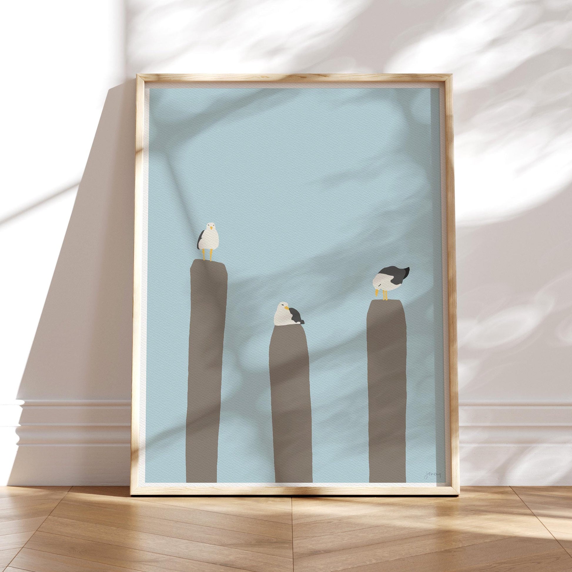 Seagulls Perched on Piers Art Print - Unframed or Framed - 130731
