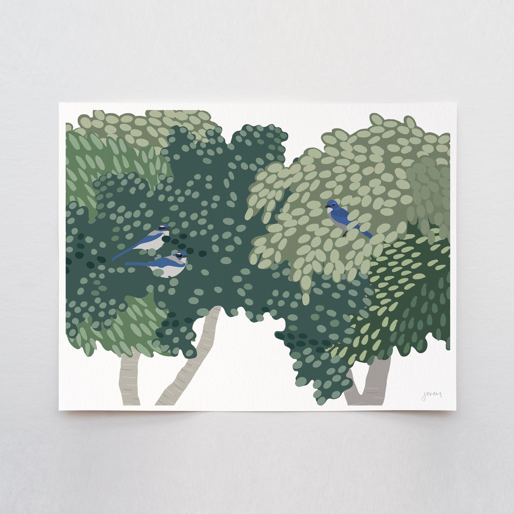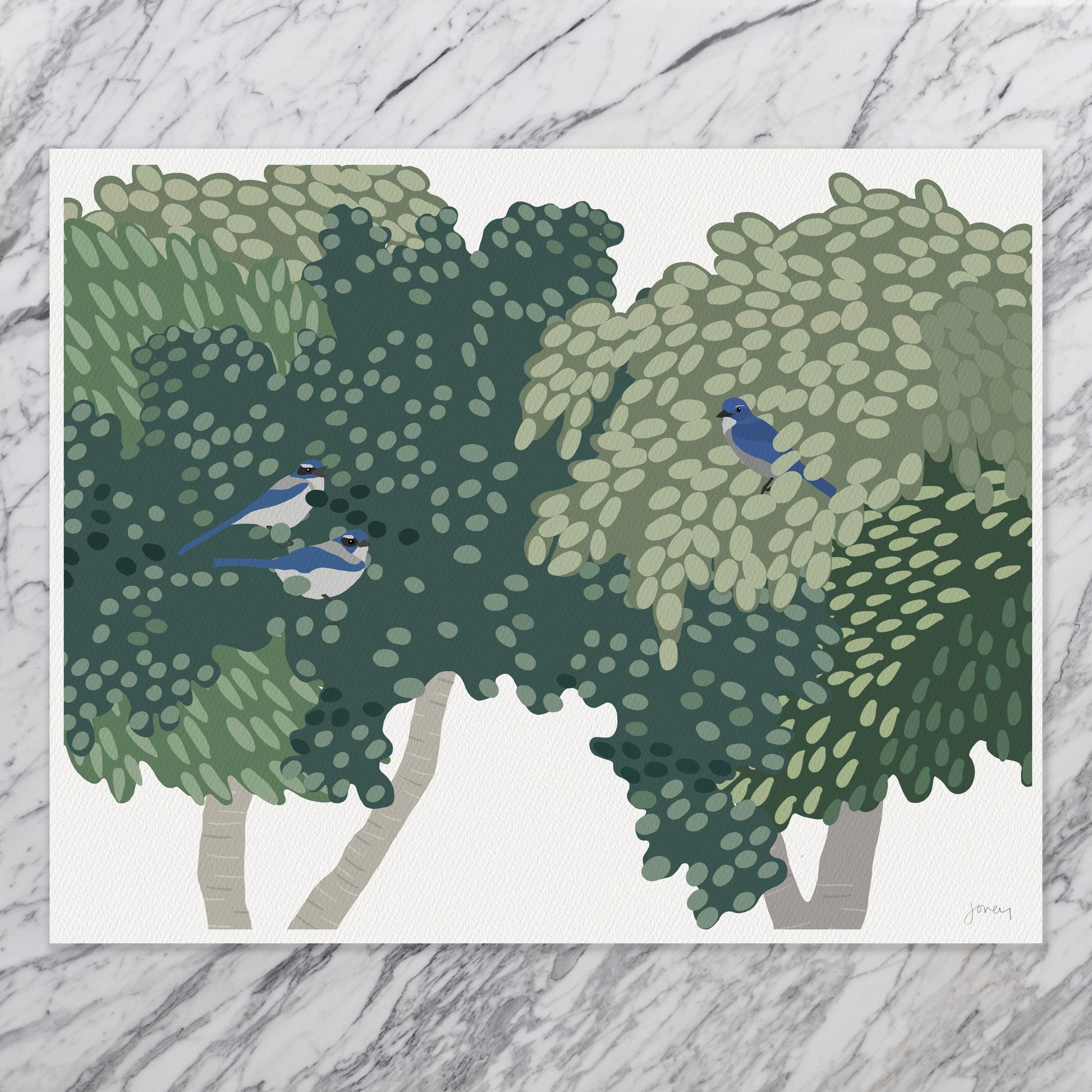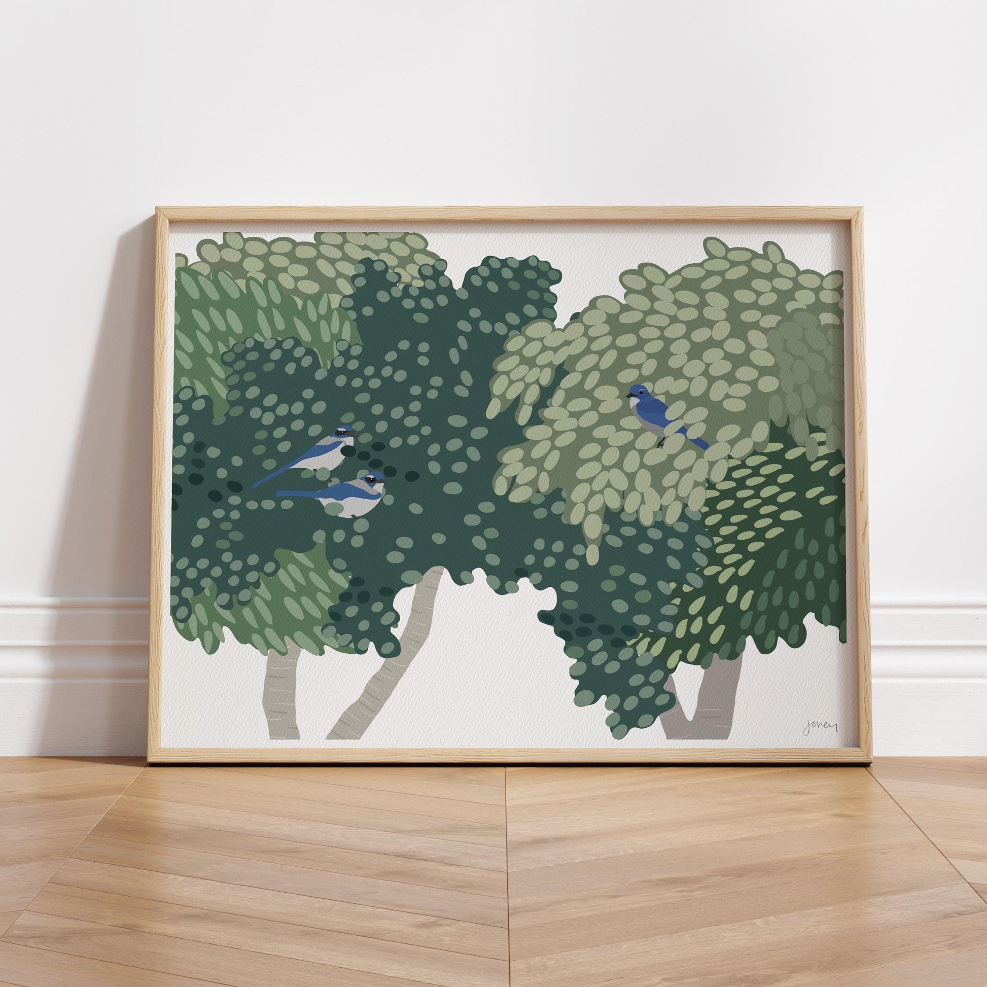 Bring the melodious charm of the “Singing Blue Jays” art print into your space—a timeless addition to any home.