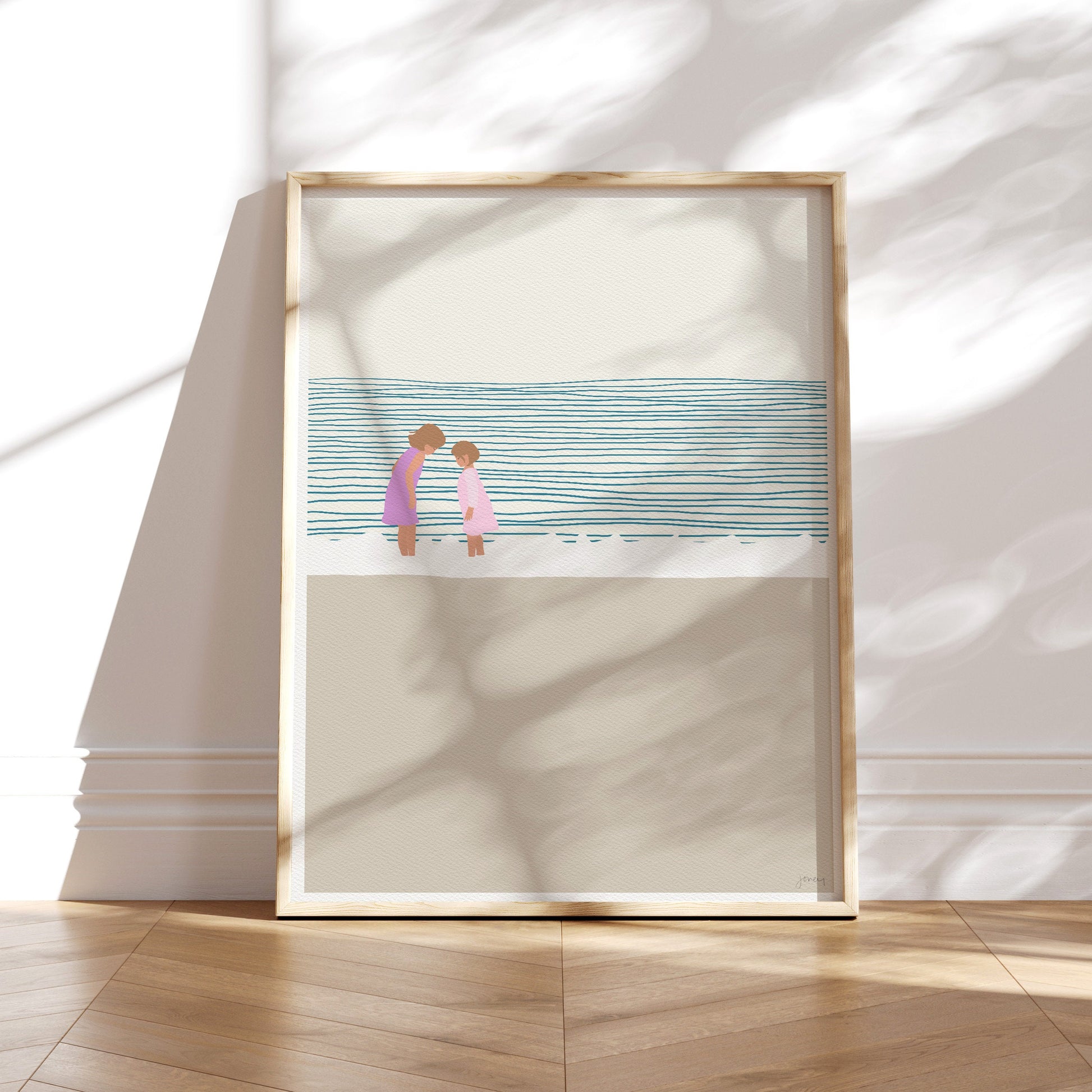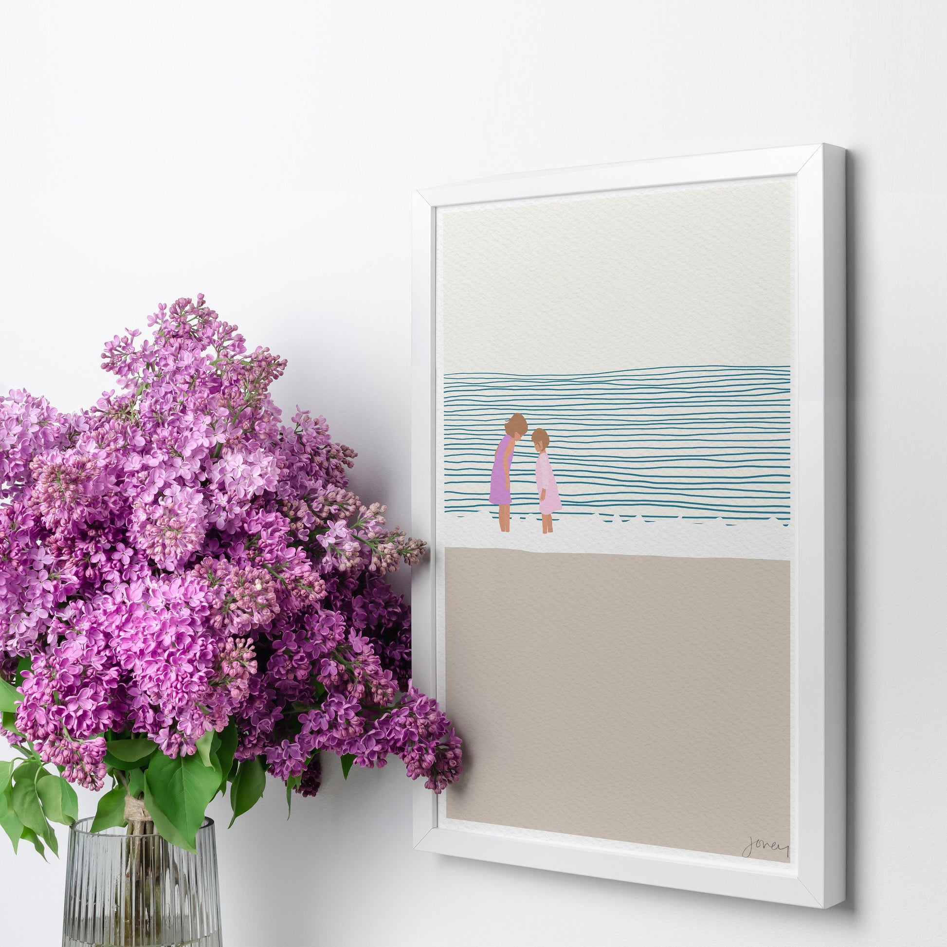 Invite the carefree spirit of beach days into your home with our "Sisters on the Beach" art print, a beautiful addition to any coastal-themed decor.