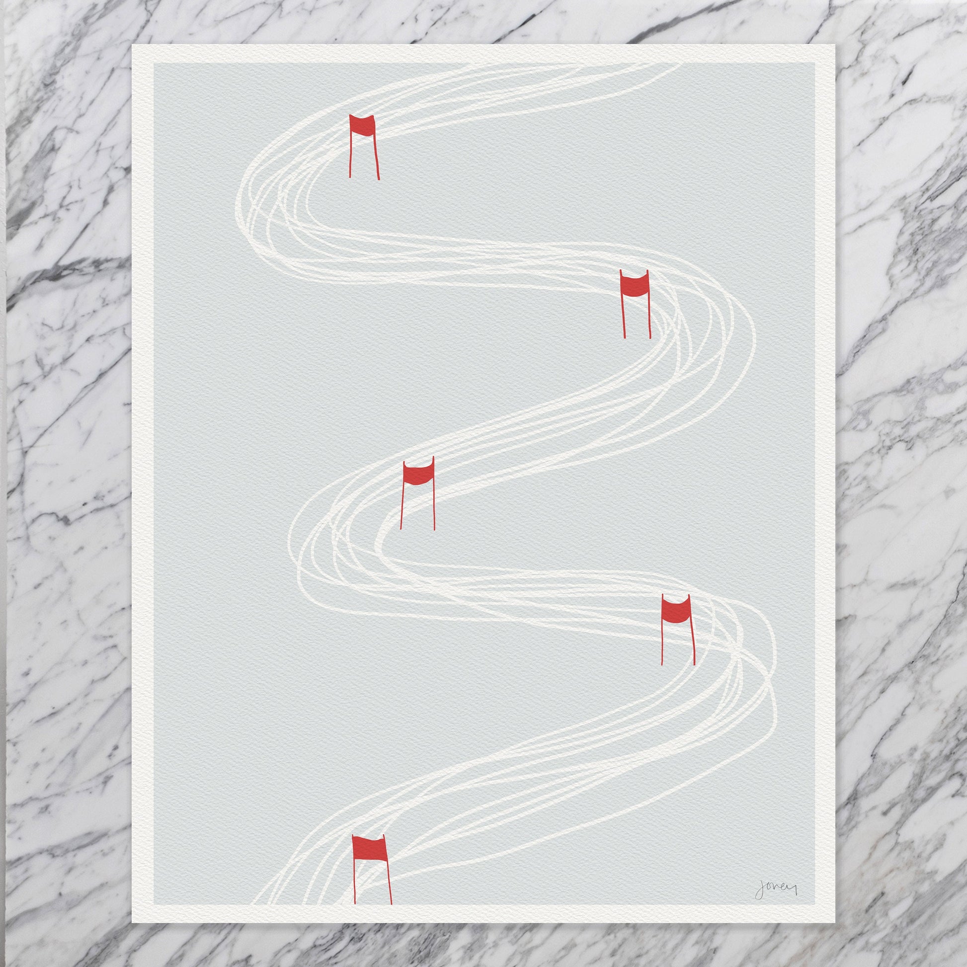 Inspired by the thrill of downhill skiing, this artwork captures the exhilaration of slalom. Whether you're a skiing enthusiast or simply appreciate the energy and grace of this winter sport, this art print is a testament to the elegance of the slopes.