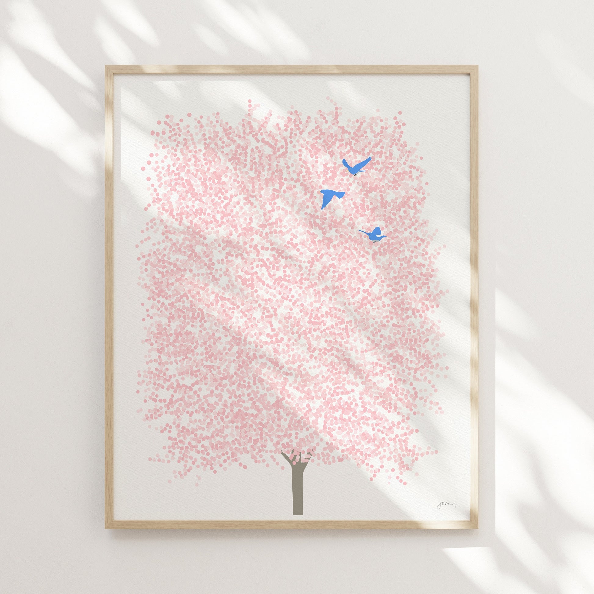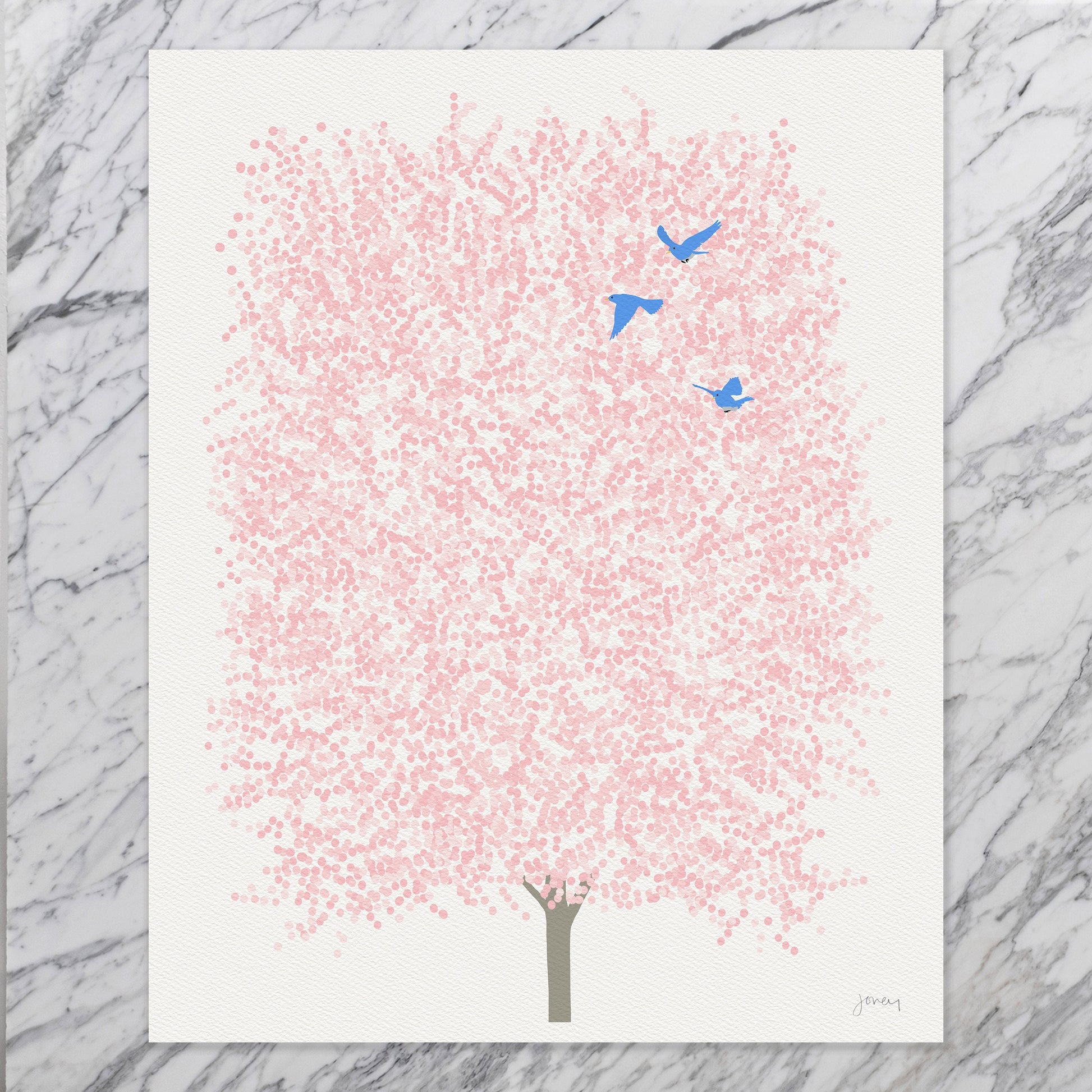 Transport yourself to a spring day with my 'Spring Cherry Blossoms with Blue Birds' art print. This delightful piece captures the beauty of cherry blossoms in full bloom, accompanied by the cheerful presence of blue birds.