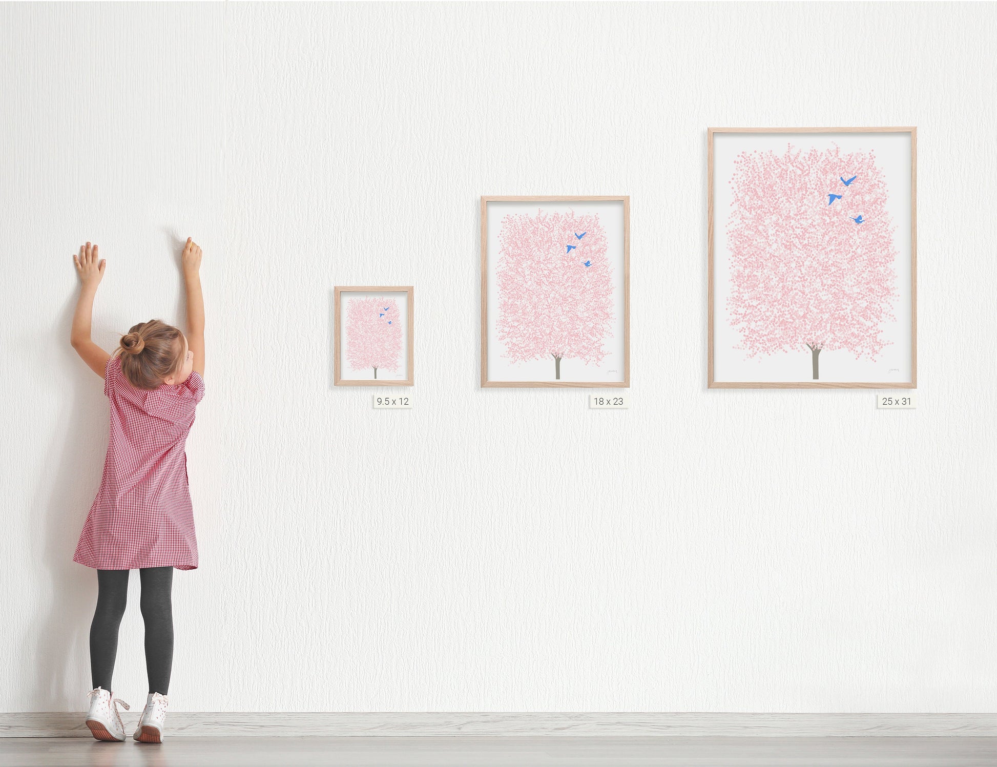 Choose between framed or unframed art. Our carefully-selected frames, made from solid maple, arrive ready to hang and beautifully complement the artwork. Alternatively, unframed prints are available in standard sizes, such as 8"x10" and 16"x20", allowing you to choose your own frame. Custom sizes are also available upon request.
