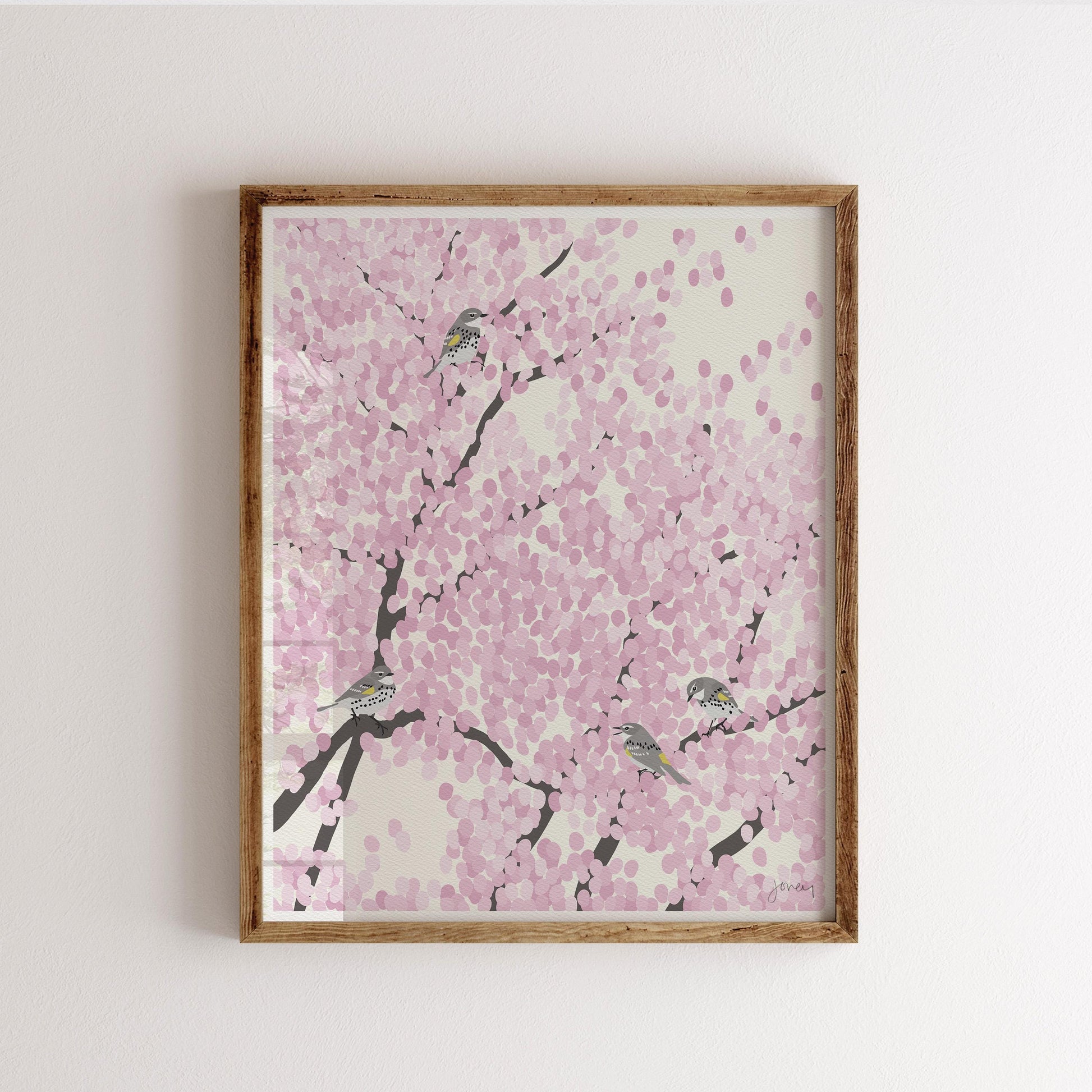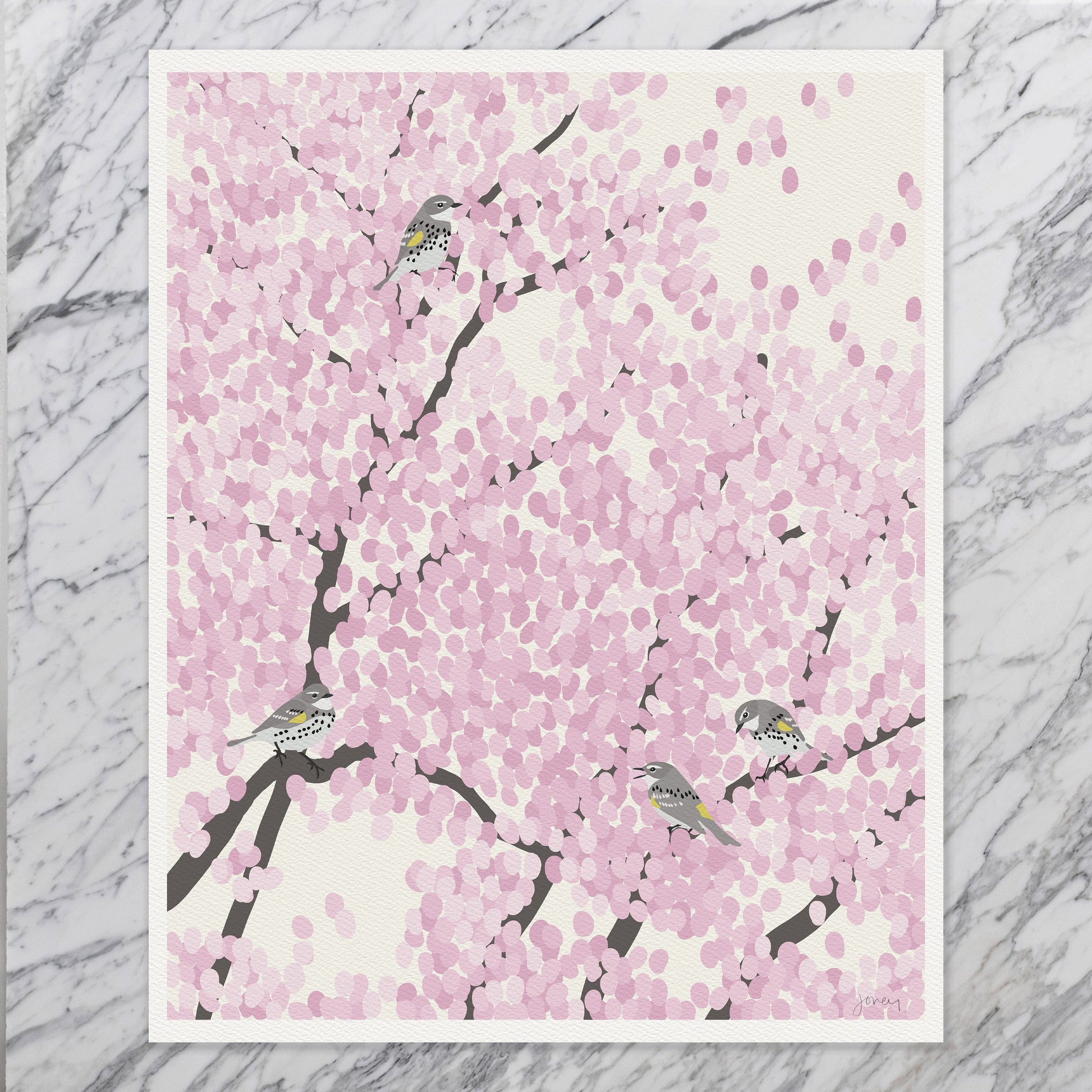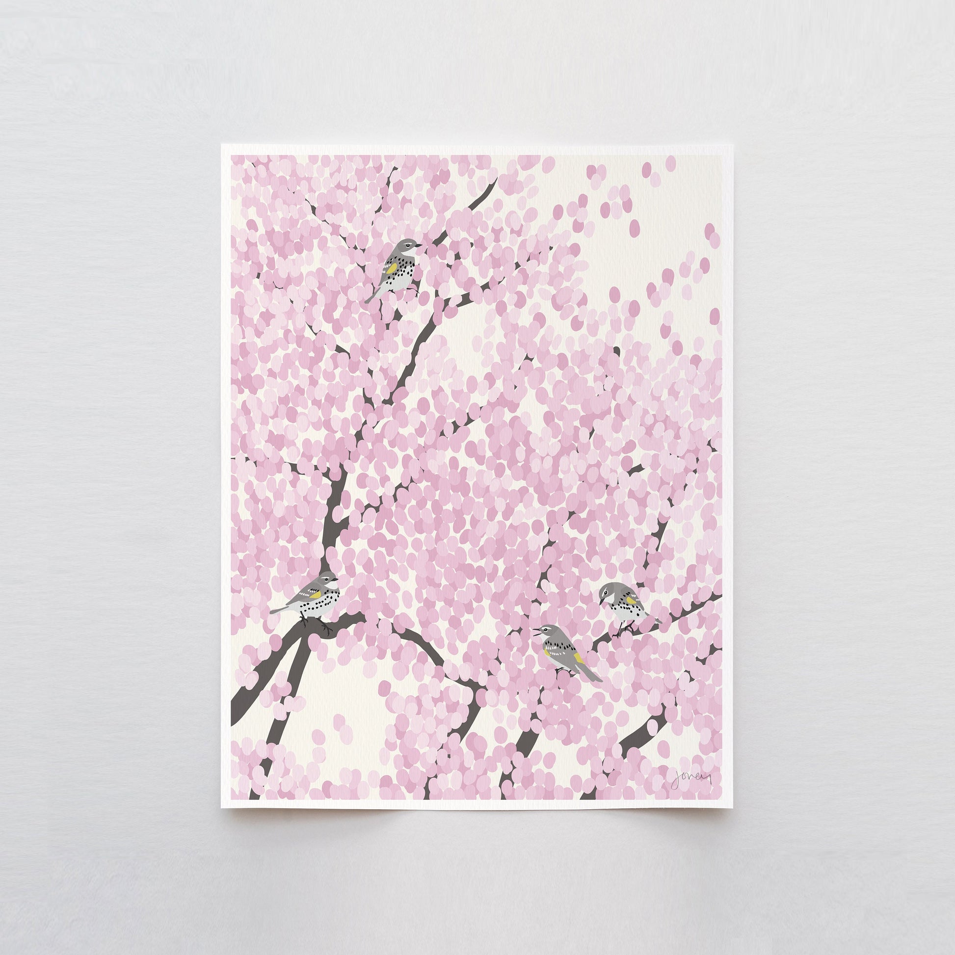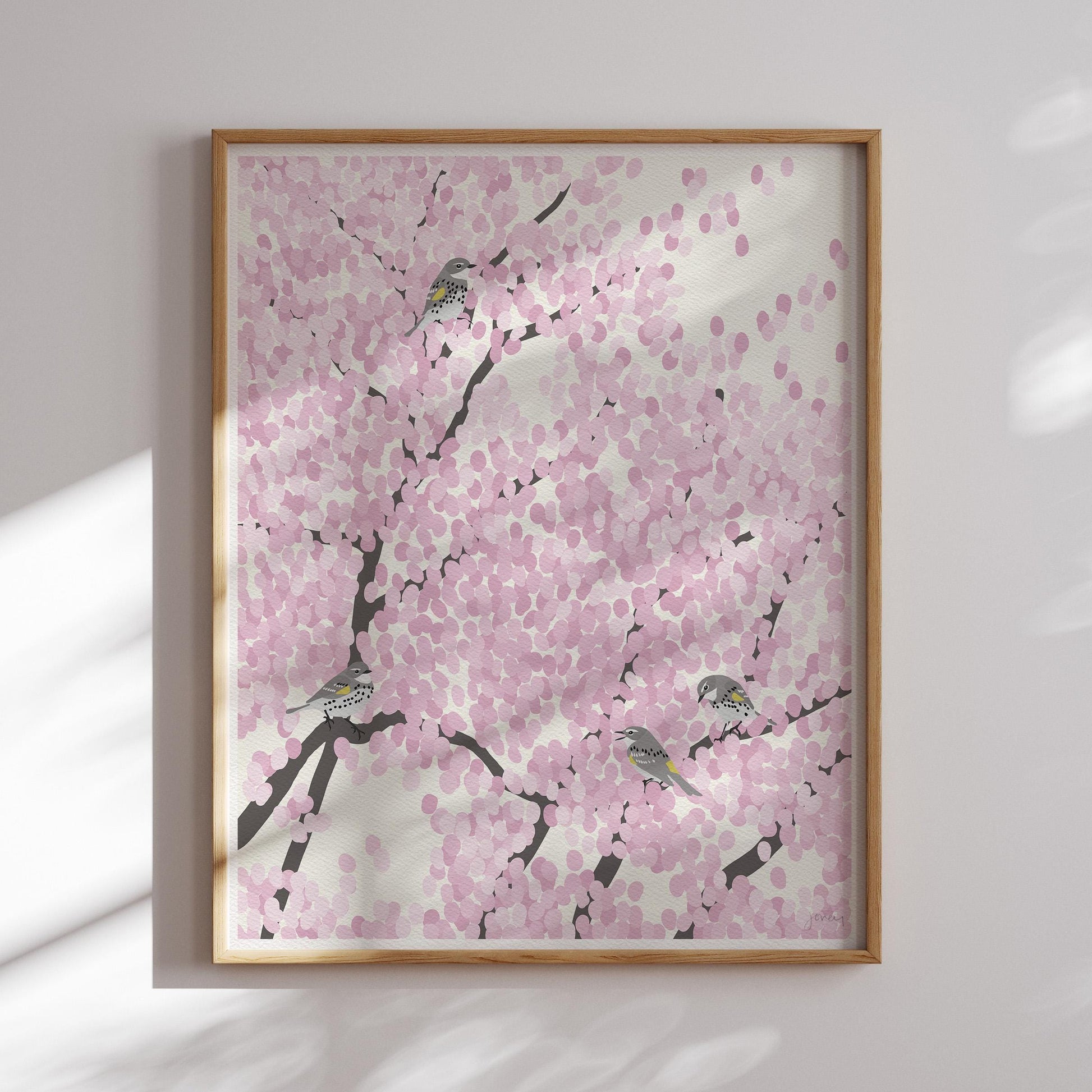 Immerse yourself in the ephemeral beauty of spring with the "Spring Warblers in Cherry Tree Art Print." Inspired by the bloom of cherry blossoms in New York's Central Park.