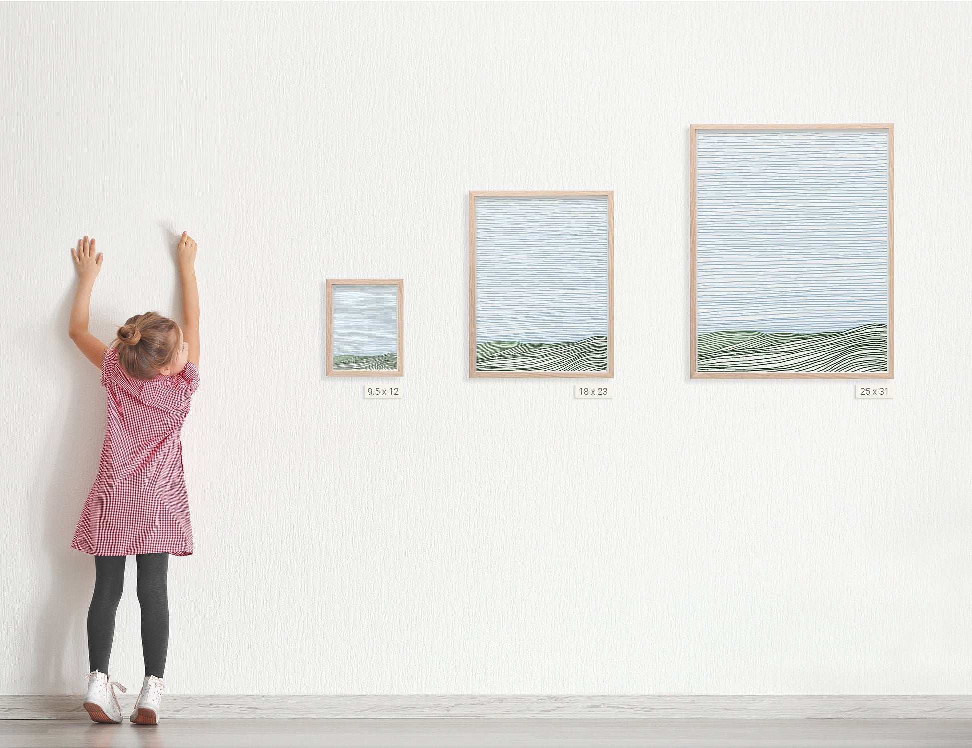 Choose between framed or unframed art. Our solid maple frames offer a refined, ready-to-hang presentation that complements the artwork. Alternatively, the unframed prints are available in standard sizes (8"x10" and 16"x20"), allowing you the flexibility to frame according to your home decor. Custom sizes are also available upon request.