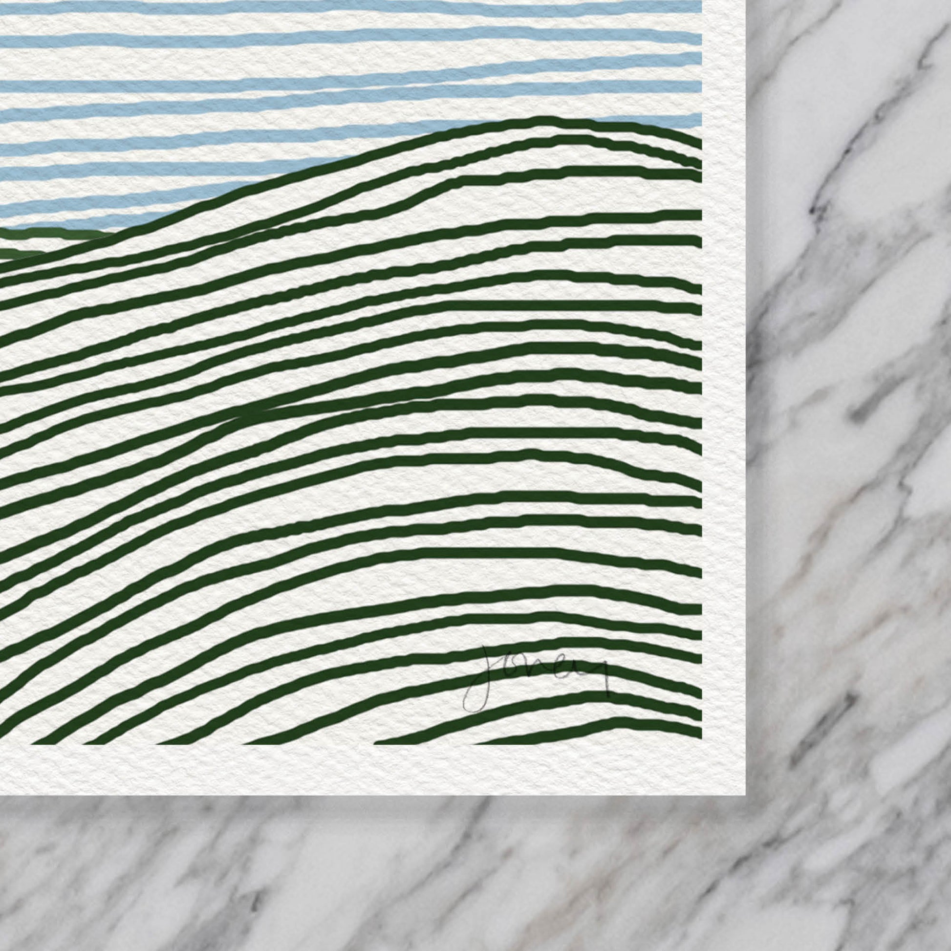 Immerse yourself in the calming beauty of the landscape with my 'Striped Hills' art print. This piece captures the essence of my favorite rolling hills in California in a mesmerizing abstract composition.