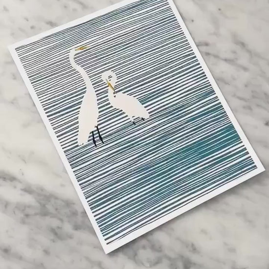 Striped Water with Egrets Art Print - Unframed or Framed - 141106