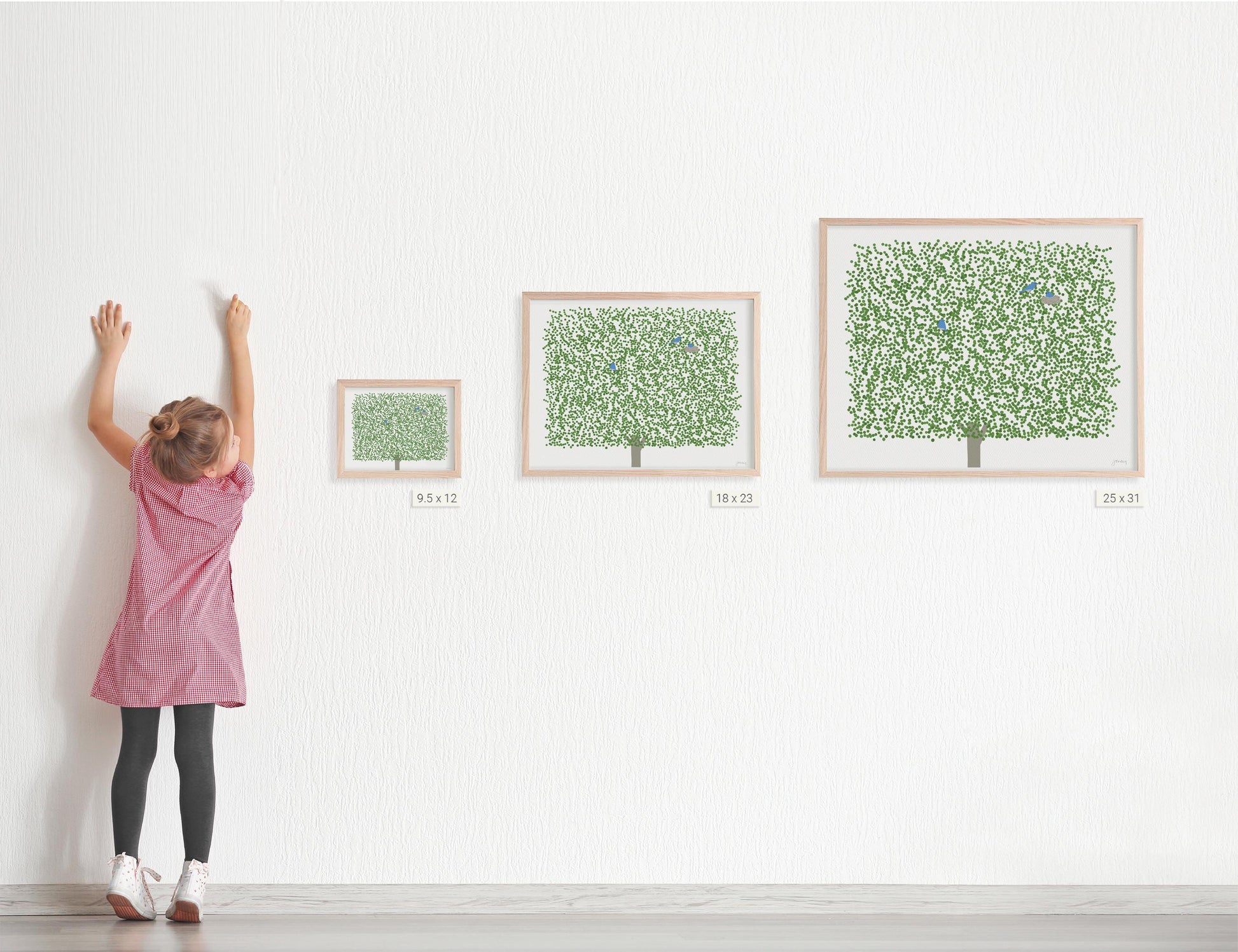 Choose between framed or unframed art. Our thoughtfully selected frames, made from sustainably sourced solid maple, arrive ready to hang and beautifully complement the artwork. Alternatively, unframed prints are available in standard sizes, such as 8"x10" and 16"x20", allowing you to choose your own frame. Custom sizes are also available upon request.