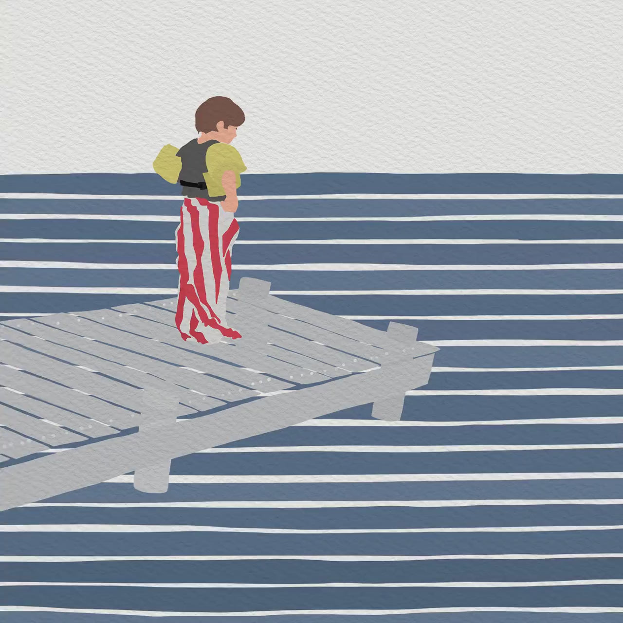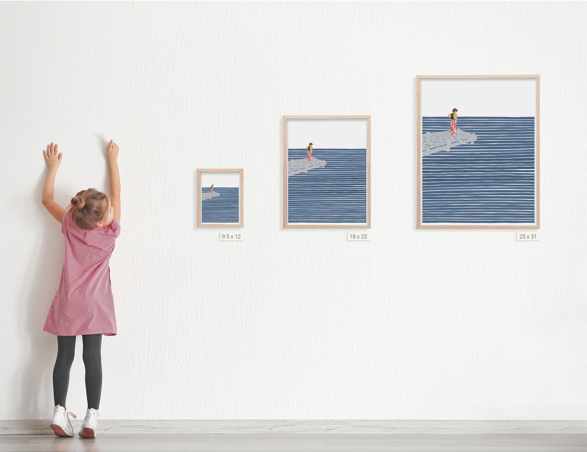 Remember childhood joy with "Swimming Dock" Art Print. Revisit the carefree days of youth with this artwork. Inspired by summers spent by the lake, it captures a moment of childhood wonder.