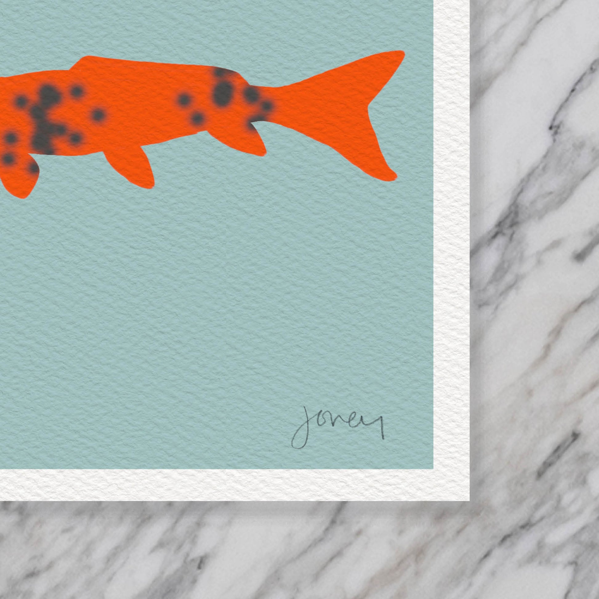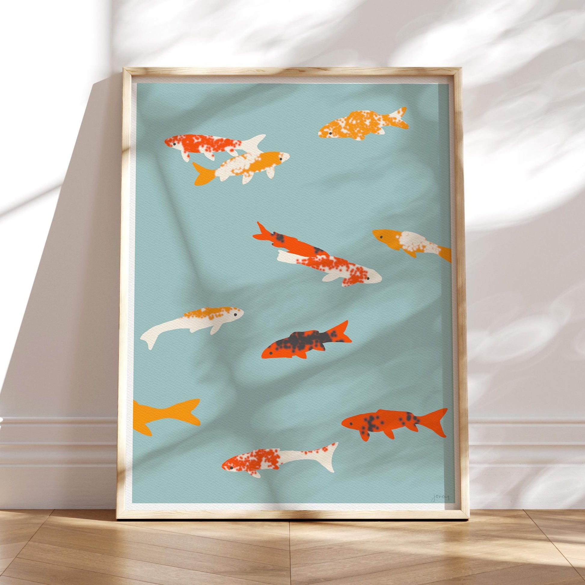 The vibrant colors and serene composition make this fishpond art print a perfect addition to your home decor. It also makes for a thoughtful gift for art enthusiasts and nature lovers alike.