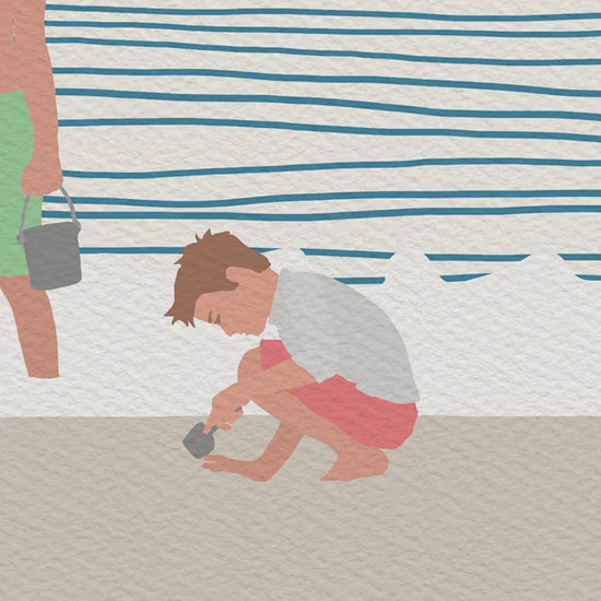 Bring the spirit of coastal living into your home with our 'Three Kids on the Beach' art print, a timeless celebration of family and seaside joy."