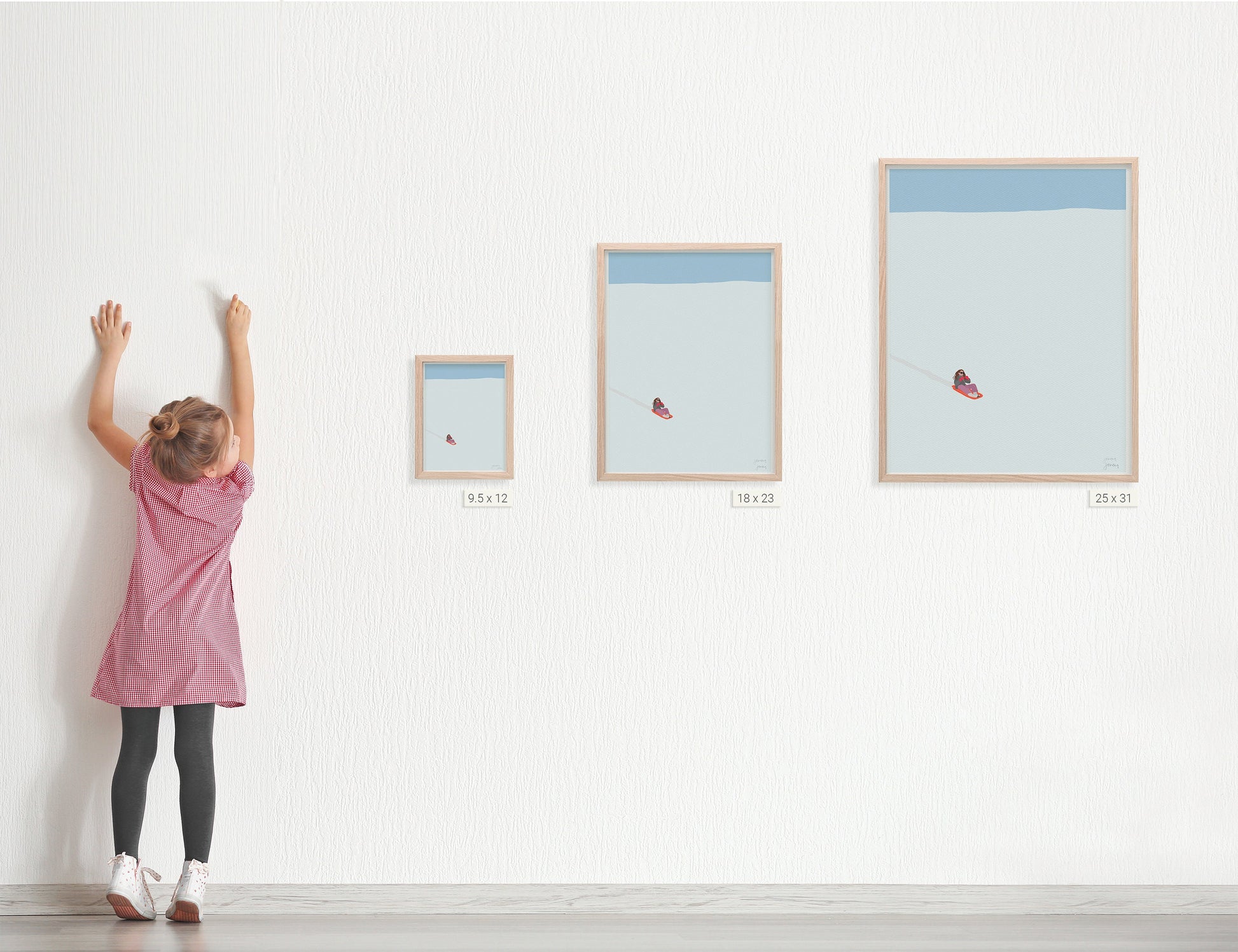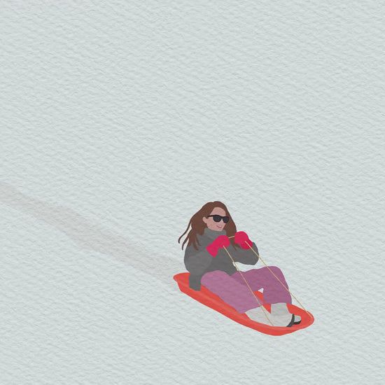 Immerse yourself in the joy and exhilaration of winter with this "Girl Tobogganing Art Print". Inspired by a memorable family trip to Tahoe, this piece captures the essence of winter fun and the thrill of the first sled ride of the winter.