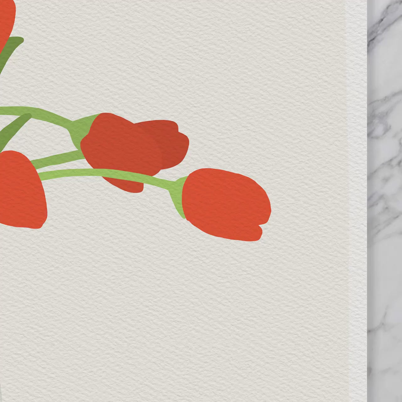 Add a touch of elegance and a pop of color with my orange "Tulips Art Print." This artwork was inspired by the tulips surrounding the Conservatory of Flowers in San Francisco, which is one of my favorite places to visit.