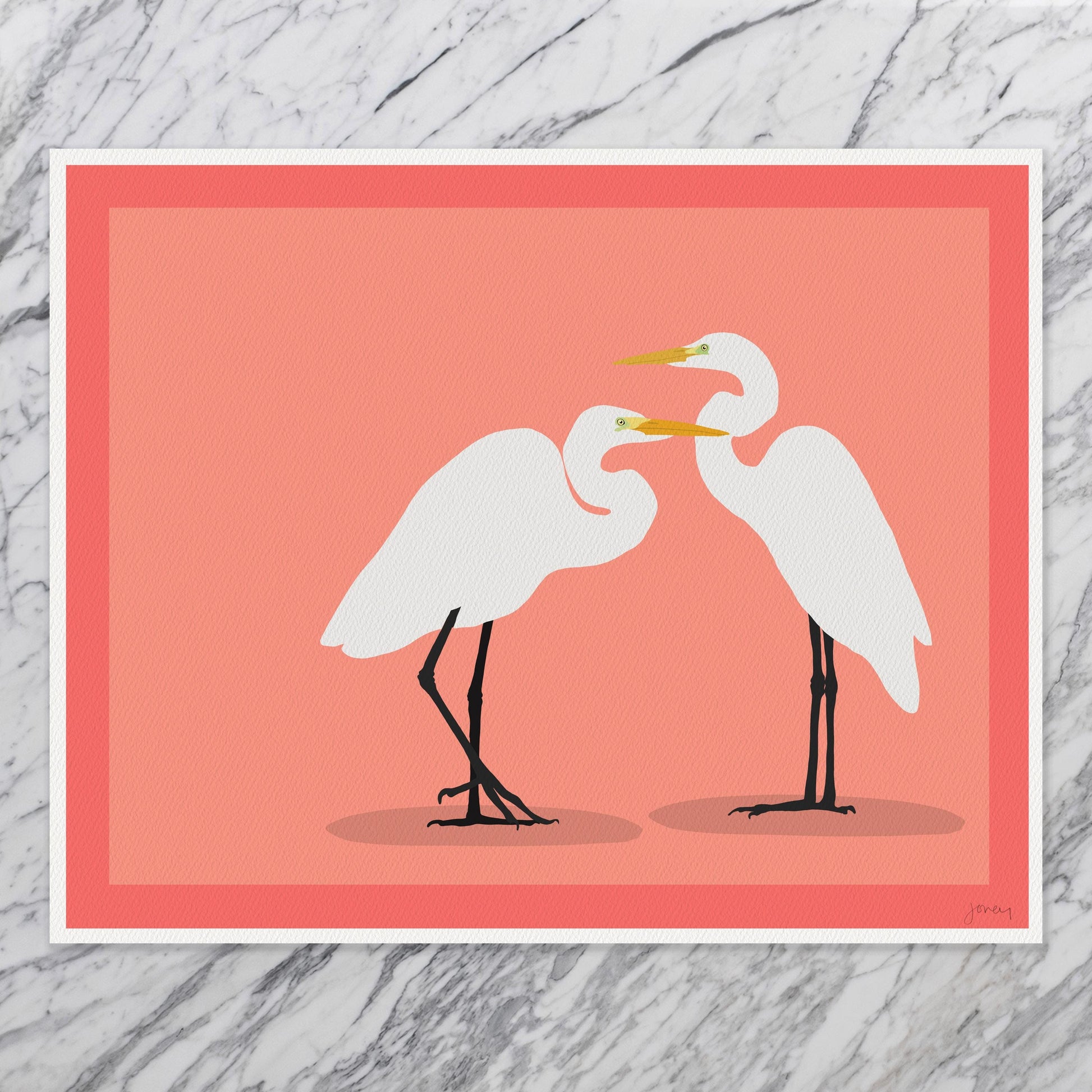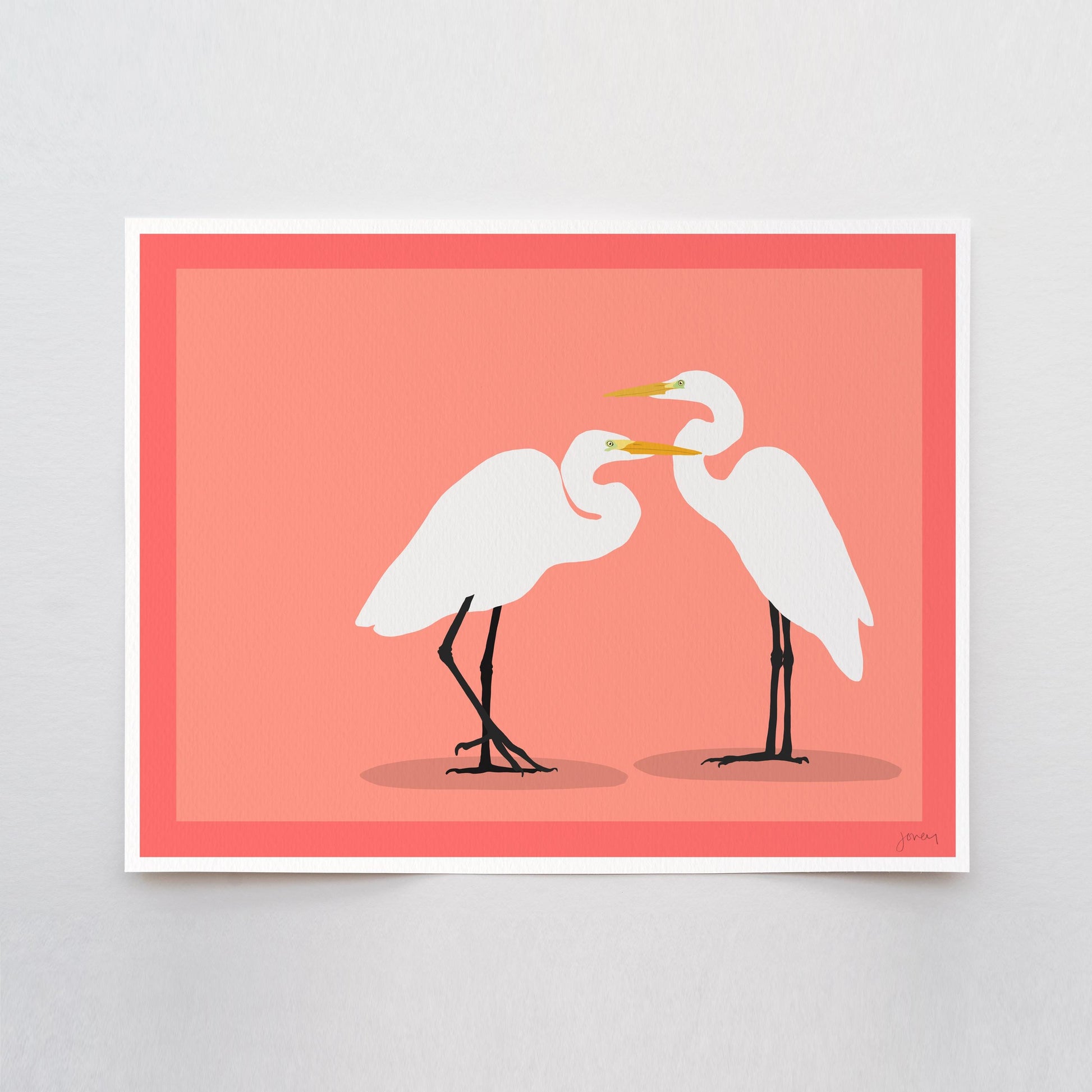 Two Coral Egrets Art Print – Signed by Jorey Hurley - 260222